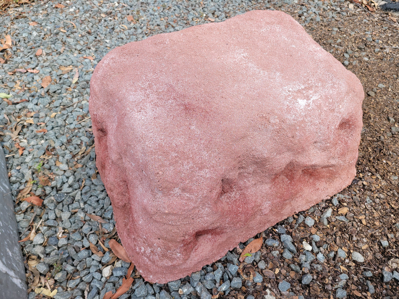 Proudly an original Australian product idea operating since 2009. Extra-Large Size Weight (approx. 30 kg) Memorial Rock/Stone/Urn with a sealable internal cavity for the safe-keeping of a loved one's ashes. Holds one or two or three standard Australian sized ash containers (as demonstrated in photos), plus memorabilia. Size Approx. 600mm x 440...