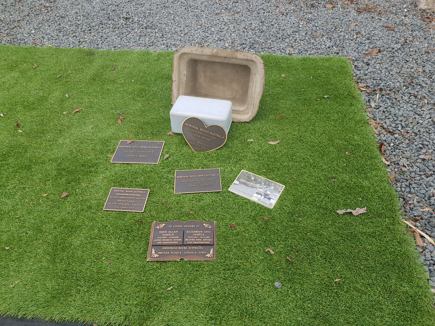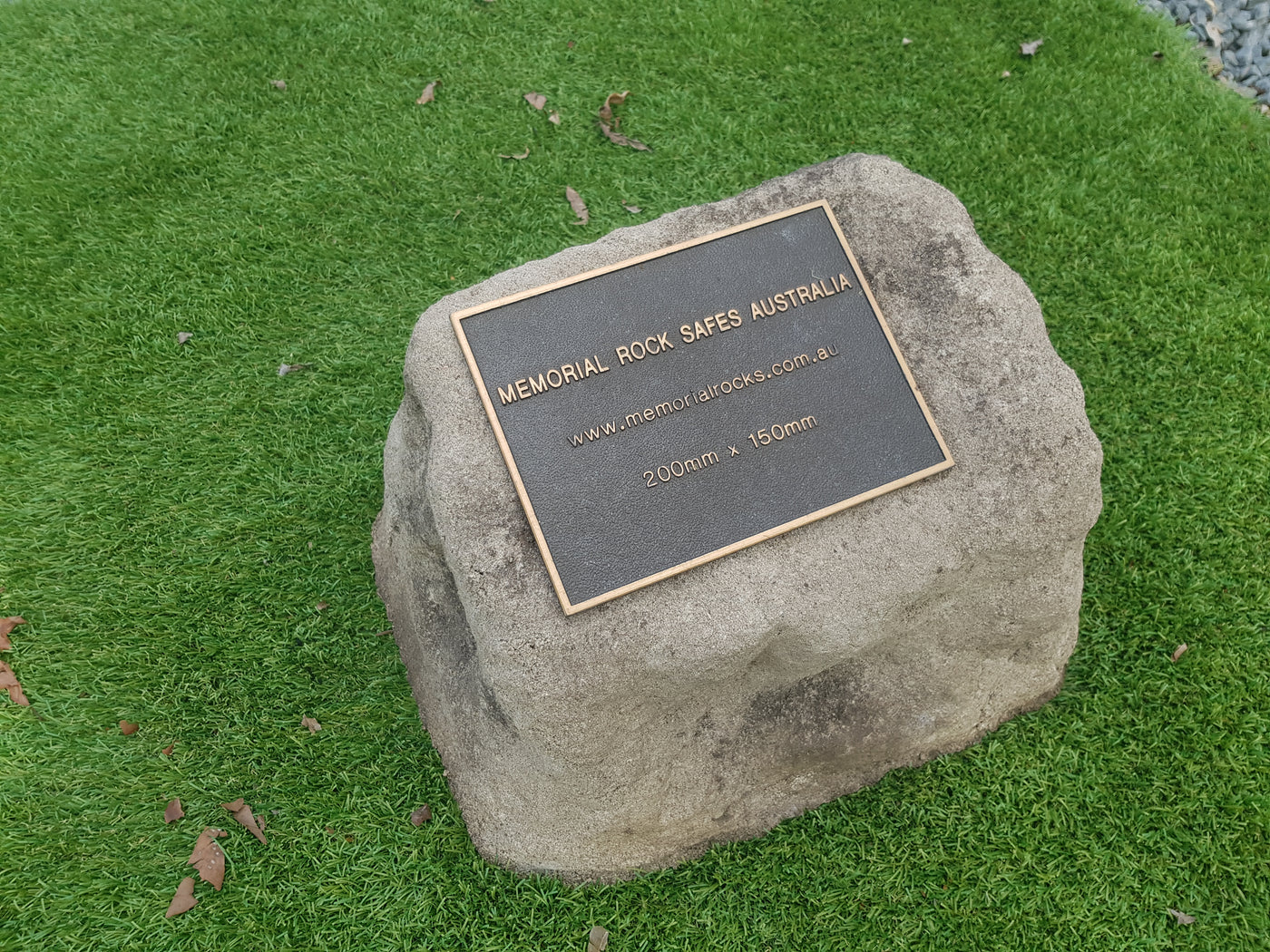 Proudly an original Australian product idea operating since 2009. Large Single Size Approx. 24 kg. Memorial Rock/Stone/Urn with a sealable internal cavity for the safe-keeping of a loved one's ashes. Holds one standard Australian sized ash container, plus memorabilia. Size Approx. 450mm x 390mm x 300mm (external). 270mm x 230mm x 170mm (interna...
