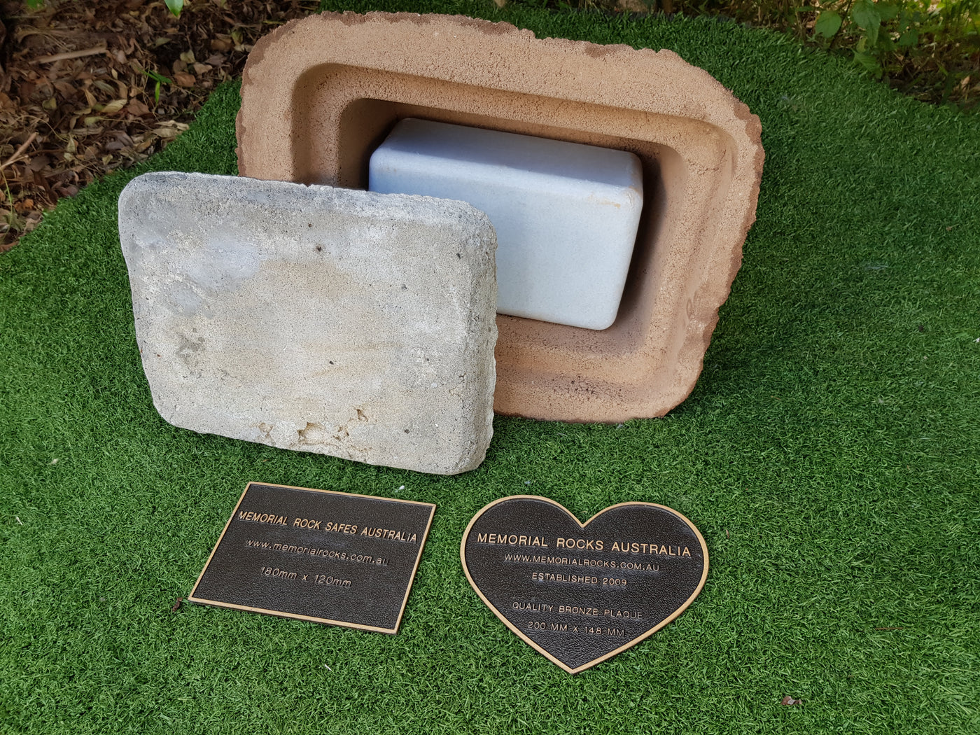 Proudly an original Australian product idea operating since 2009. Large Single Size Approx. 24 kg. Memorial Rock/Stone/Urn with a sealable internal cavity for the safe-keeping of a loved one's ashes. Holds one standard Australian sized ash container, plus memorabilia. Size Approx. 450mm x 390mm x 300mm (external). 270mm x 230mm x 170mm (interna...