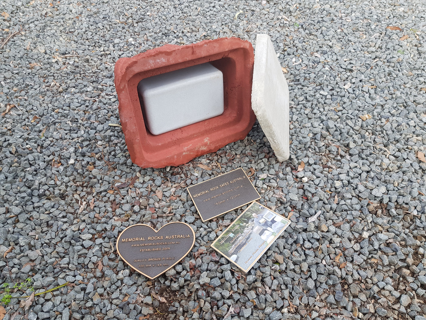 Proudly an original Australian product idea operating since 2009. Large Single Size Approx. 24 kg. Memorial Rock/Stone/Urn with a sealable internal cavity for the safe-keeping of a loved one's ashes. Holds one standard Australian sized ash container, plus memorabilia. Size Approx. 450mm x 390mm x 300mm (external). 270mm x 230mm x 170mm (interna...