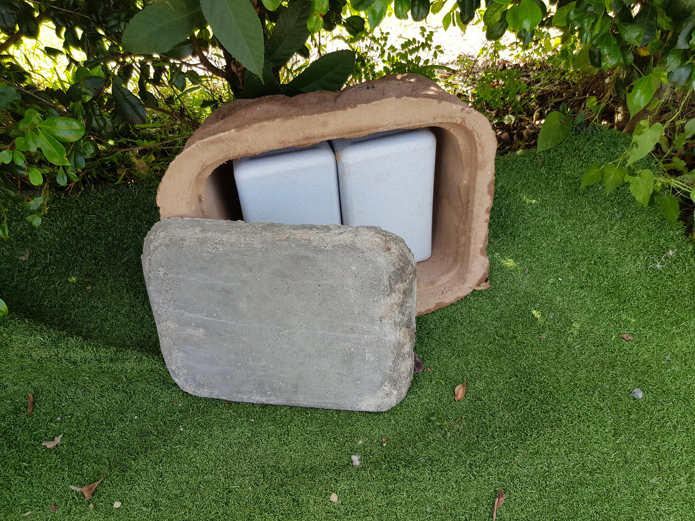 Proudly an original Australian product idea operating since 2009. Large Double Size Weight (approx. 24 kg) Memorial Rock/Stone/Urn with a sealable internal cavity for the safe-keeping of a loved one's ashes. Holds one or two standard Australian sized ash containers, plus memorabilia. Size Approx. 490mm x 410mm x 300mm (external). 320mm x 260mm ...