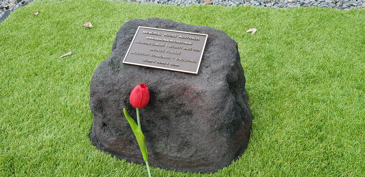 Memorial Rock Urns are a loving practical alternative for the safe keeping of a loved one's ashes. This Memorial rock has an incorporated flat space for up to a 180mm x 120mm x 4.5mm Plaque or our heart plaque. (200mm x 150mm) PLAQUE SOLD SEPARATELY The blue plastic standard Australian sized cremation urn seen in the pictures demonstrates the ...