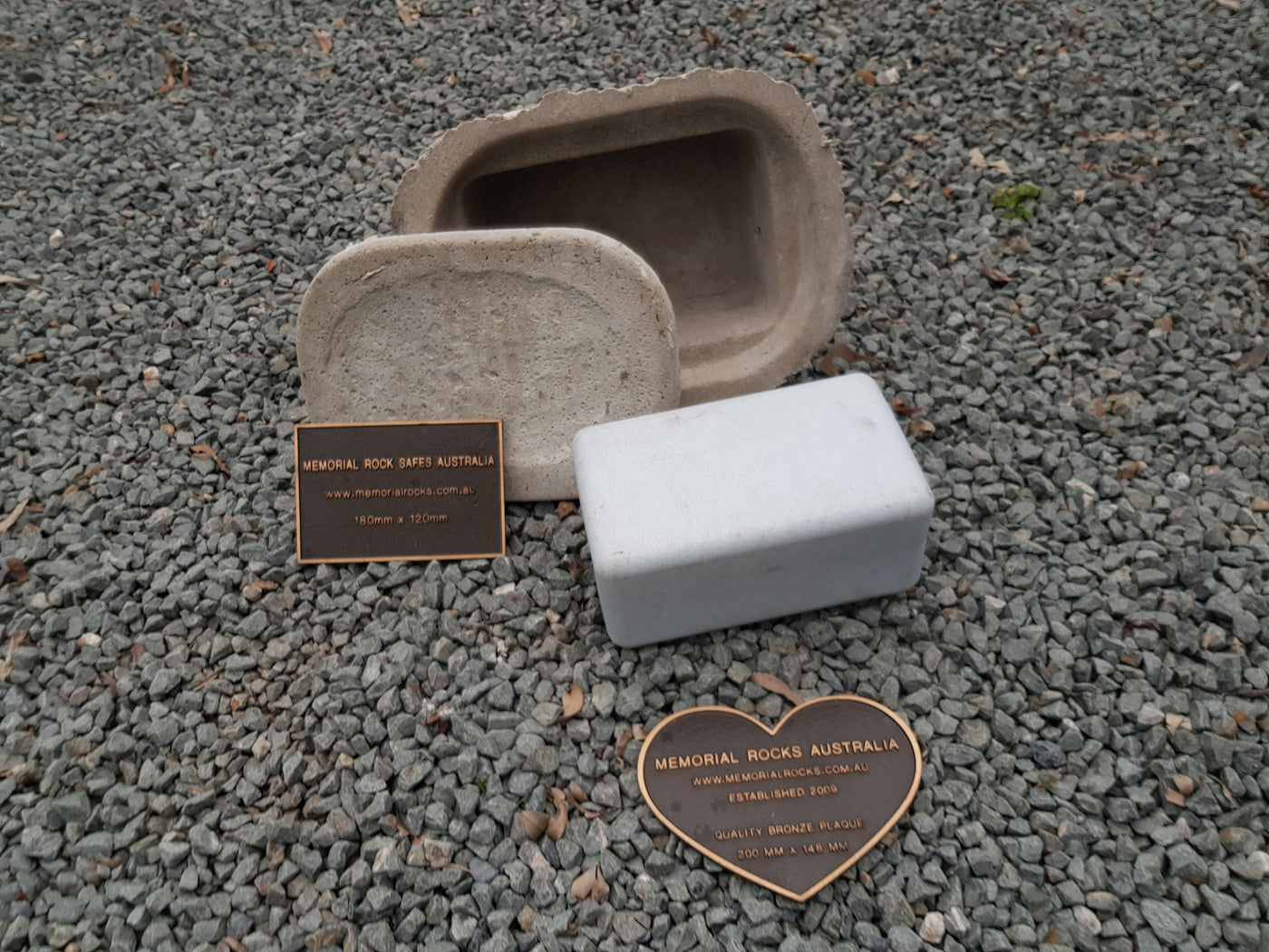 Memorial Rock Urns are a loving practical alternative for the safe keeping of a loved one's ashes. This Memorial rock has an incorporated flat space for up to a 180mm x 120mm x 4.5mm Plaque or our heart plaque. (200mm x 150mm) PLAQUE SOLD SEPARATELY The blue plastic standard Australian sized cremation urn seen in the pictures demonstrates the ...