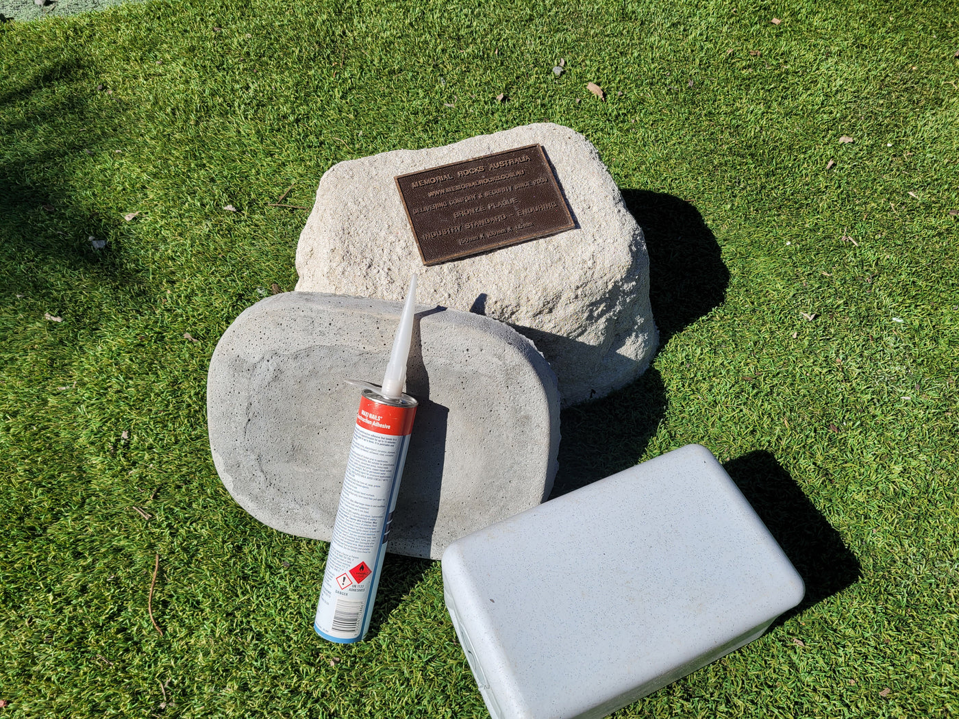 Memorial Rock Urns are a loving practical alternative for the safe keeping of a loved one's ashes. This Memorial rock has an incorporated flat space for up to a 180mm x 120mm x 4.5mm Plaque or our heart plaque. (200mm x 150mm) PLAQUE SOLD SEPARATELY The blue plastic standard Australian sized cremation urn seen in the pictures demonstrates the ...