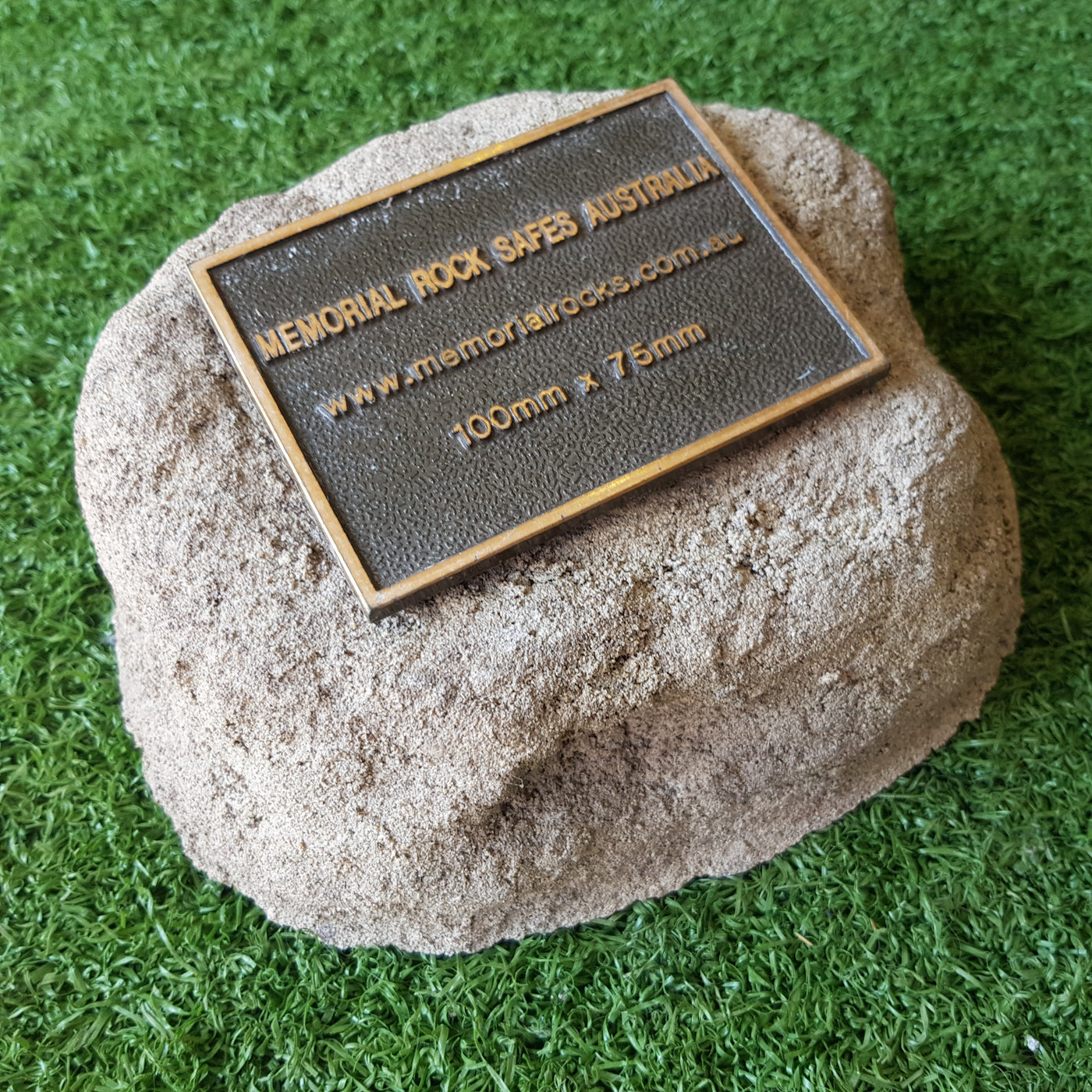Memorial Rock Urns are a loving practical alternative for the safe keeping of a loved one's ashes. This Memorial Rock Urn has a small internal sealed container for partial ash interment. This Partial Ash Urn Memorial rock has an incorporated flat space for a 100 mm x 75mm x4.5mm industry standard bronze plaque. PLAQUE SOLD SEPARATELY Proudly...