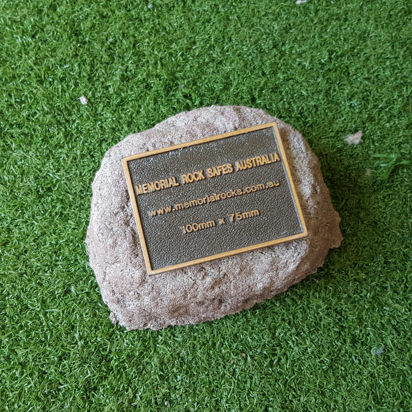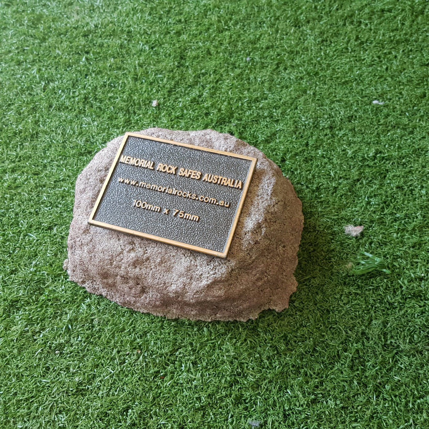 Memorial Rock Urns are a loving practical alternative for the safe keeping of a loved one's ashes. This Memorial Rock Urn has a small internal sealed container for partial ash interment. This Partial Ash Urn Memorial rock has an incorporated flat space for a 100 mm x 75mm x4.5mm industry standard bronze plaque. PLAQUE SOLD SEPARATELY Proudly...