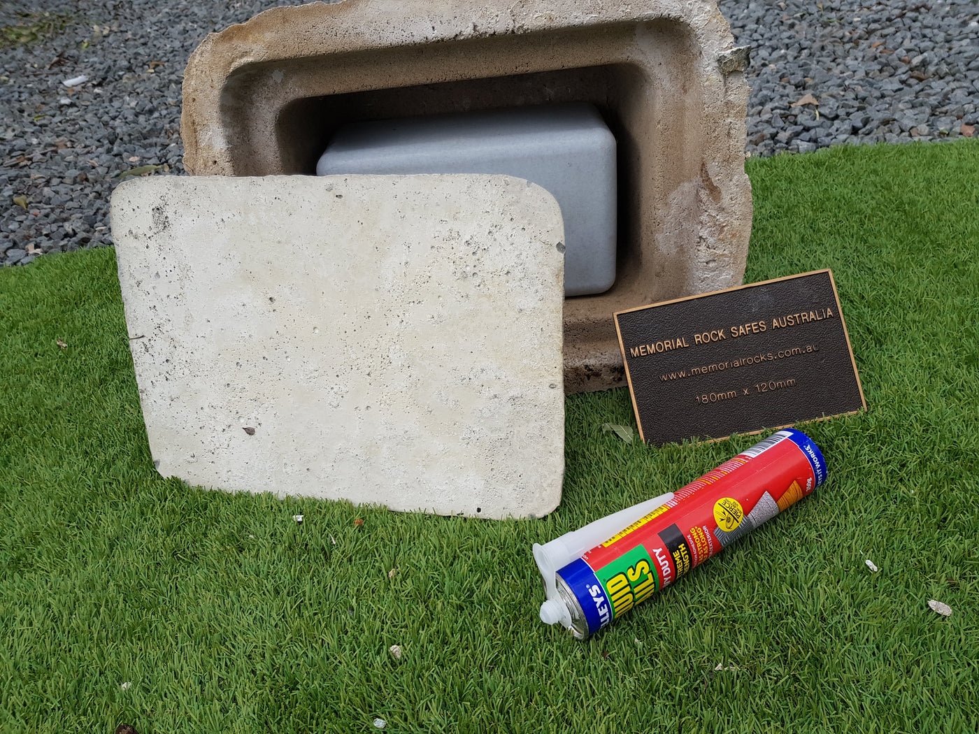 Memorial Rock Urns are a loving practical alternative for the safe keeping of a loved one's ashes. This Memorial Rock Urn has a small internal sealed container for partial ash interment. This Partial Ash Urn Memorial rock has an incorporated flat space for a 100 mm x 75mm x4.5mm industry standard bronze plaque. PLAQUE SOLD SEPARATELY Proudly...