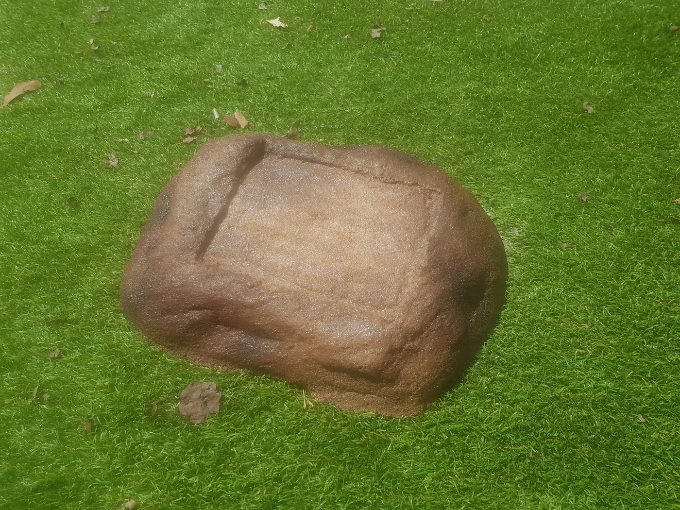 Memorial Rock Urns are a loving practical alternative for the safe keeping of a loved one's ashes. This Memorial Rock Urn has a small internal sealed container for partial ash interment. This Partial Ash Urn Memorial rock has an incorporated flat space for a 100 mm x 75mm x4.5mm industry standard bronze plaque. PLAQUE SOLD SEPARATELY. Proudl...