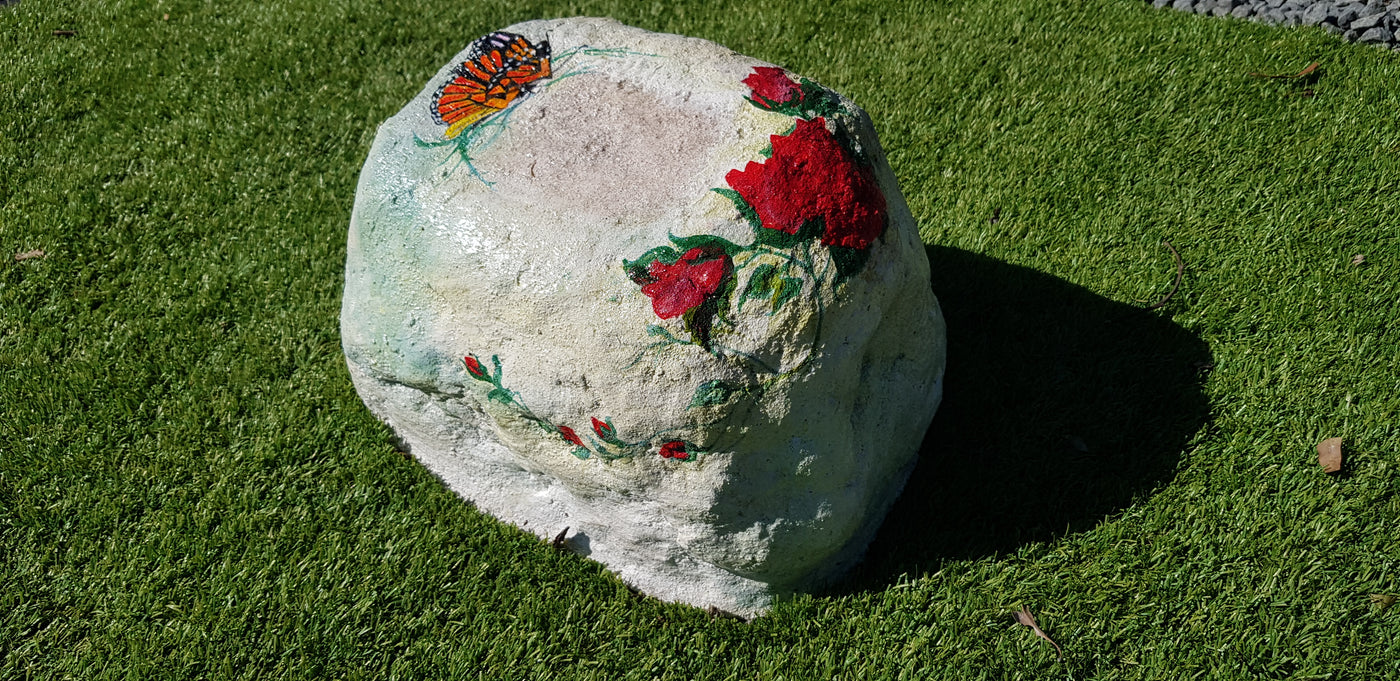 Memorial Rock Urns are a loving practical alternative for the safe keeping of a loved one's ashes. This Memorial Rock Urn has a small internal sealed container for partial ash interment. This Partial Ash Urn Memorial rock has an incorporated flat space for a 100 mm x 75mm x4.5mm industry standard bronze plaque. Proudly Australian made, origin...