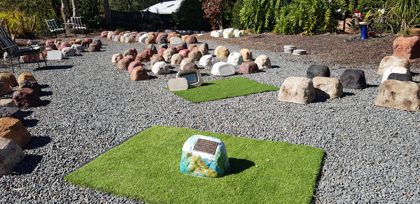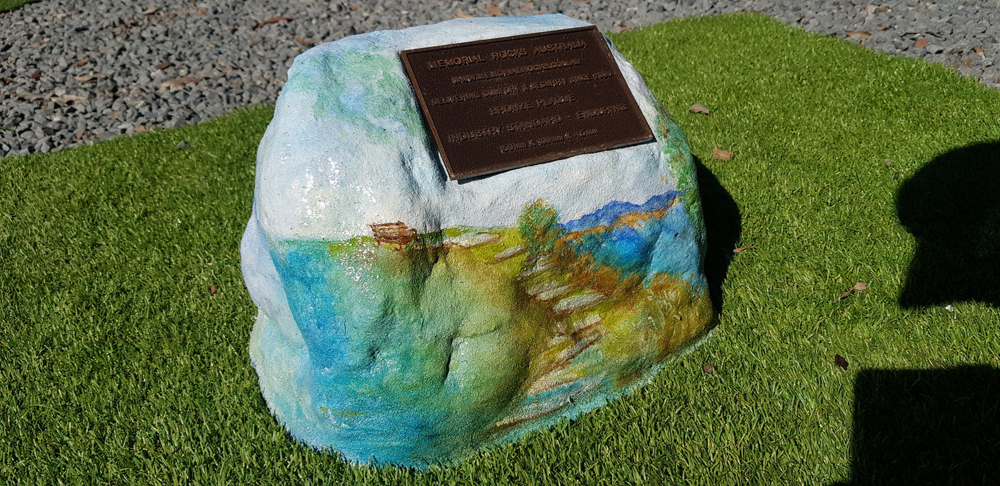 Memorial Rock Urns are a loving practical alternative for the safe keeping of a loved one's ashes. This Memorial Rock Urn has a small internal sealed container for partial ash interment. This Partial Ash Urn Memorial rock has an incorporated flat space for a 100 mm x 75mm x4.5mm industry standard bronze plaque. Proudly Australian made, origin...