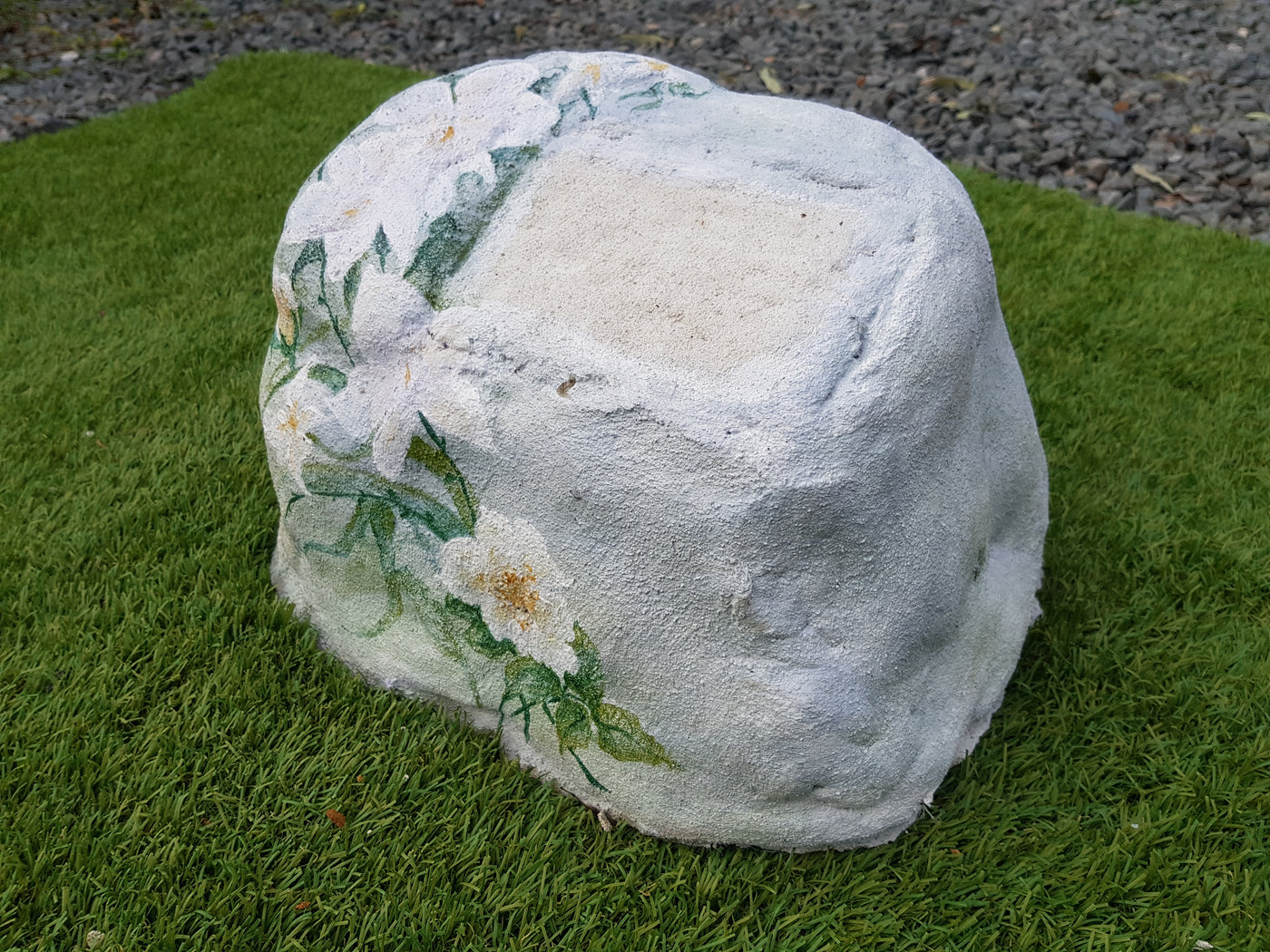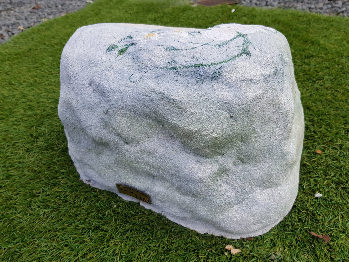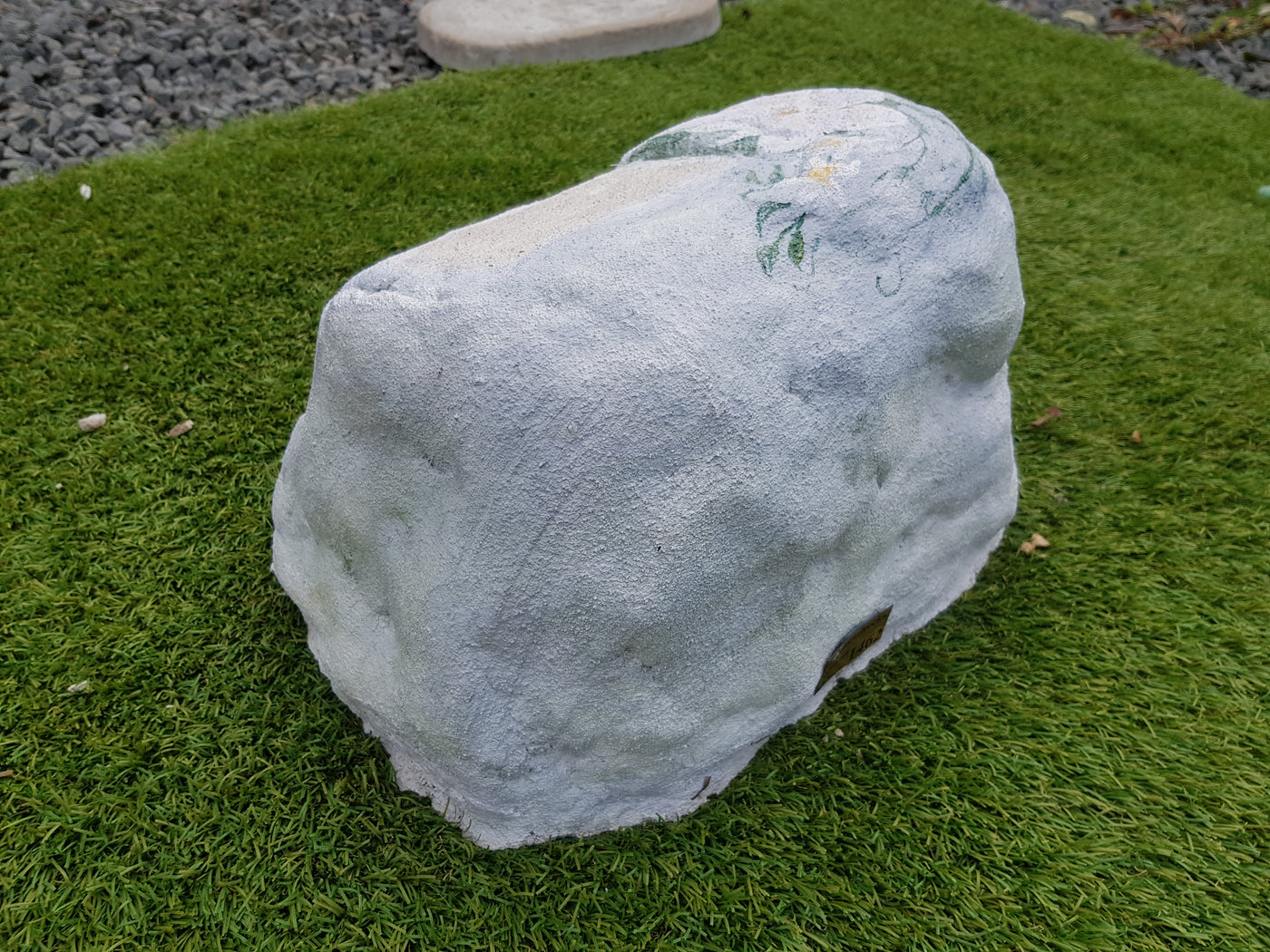 Memorial Rock Urns are a loving practical alternative for the safe keeping of a loved one's ashes. This Memorial Rock Urn has a small internal sealed container for partial ash interment. This Partial Ash Urn Memorial rock has an incorporated flat space for a 100 mm x 75mm x4.5mm industry standard bronze plaque. PLAQUE SOLD SEPARATELY. Proudl...