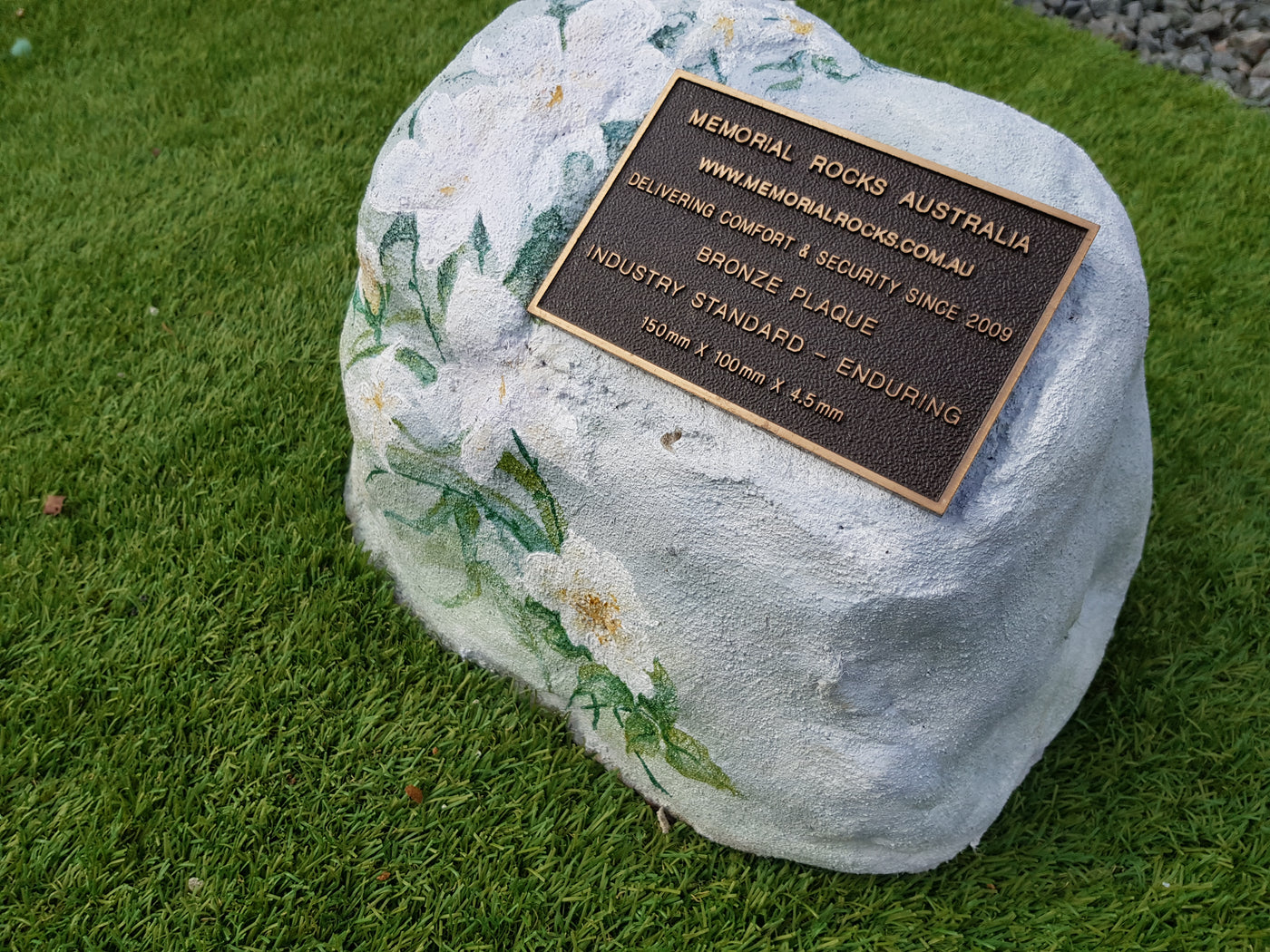 Memorial Rock Urns are a loving practical alternative for the safe keeping of a loved one's ashes. This Memorial Rock Urn has a small internal sealed container for partial ash interment. This Partial Ash Urn Memorial rock has an incorporated flat space for a 100 mm x 75mm x4.5mm industry standard bronze plaque. Proudly Australian made, origin...