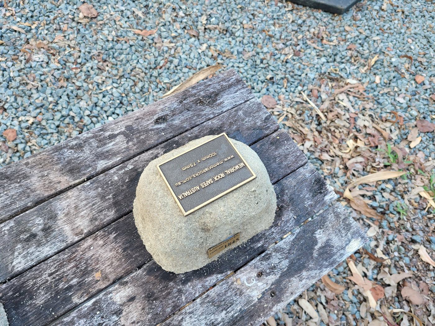 Memorial Rock Urns are a loving practical alternative for the safe keeping of a loved one's ashes. This Memorial Rock Urn has a small internal sealed container for partial ash interment. This Partial Ash Urn Memorial rock has an incorporated flat space for a 100 mm x 75mm x4.5mm industry standard bronze plaque. Proudly Australian made, origin...