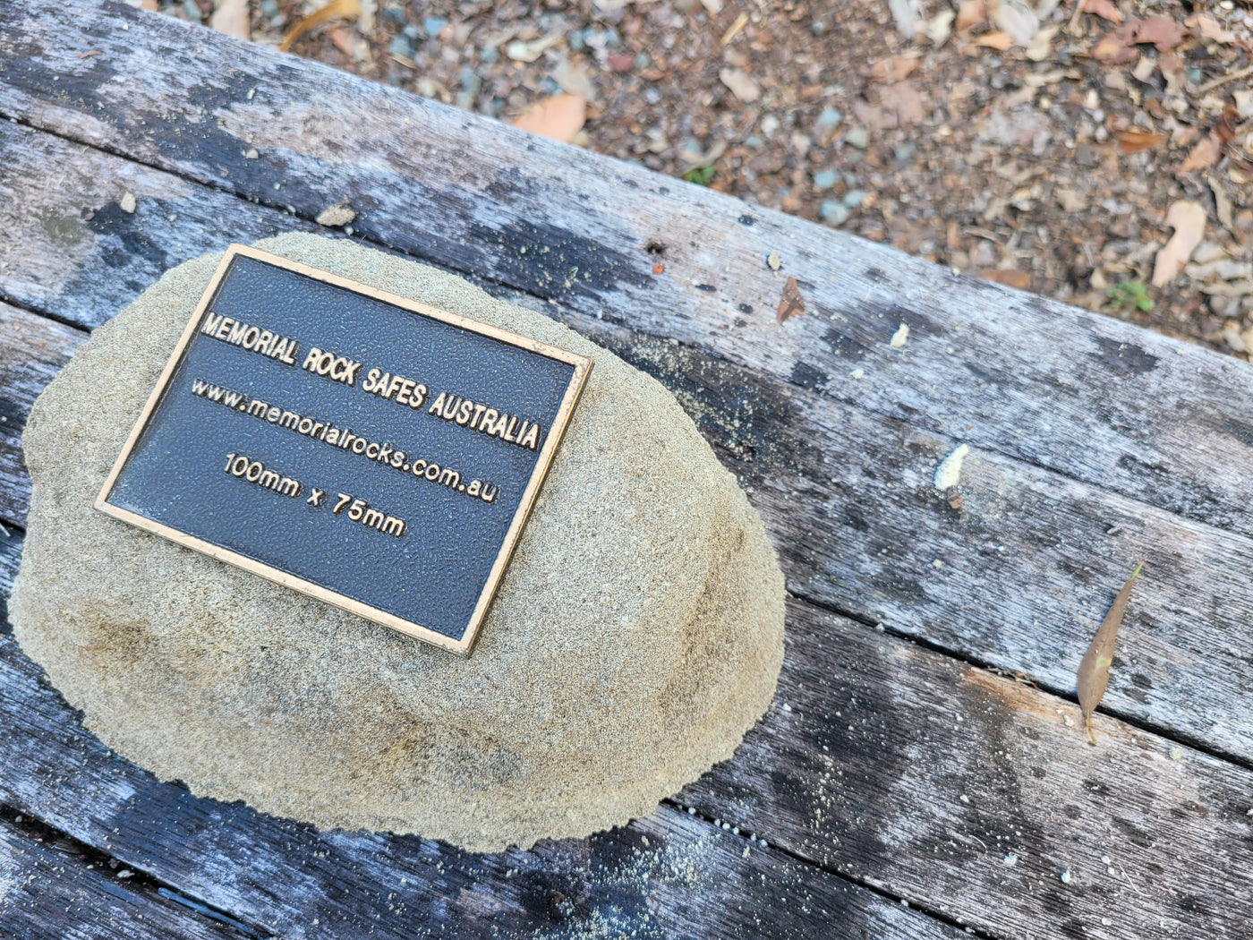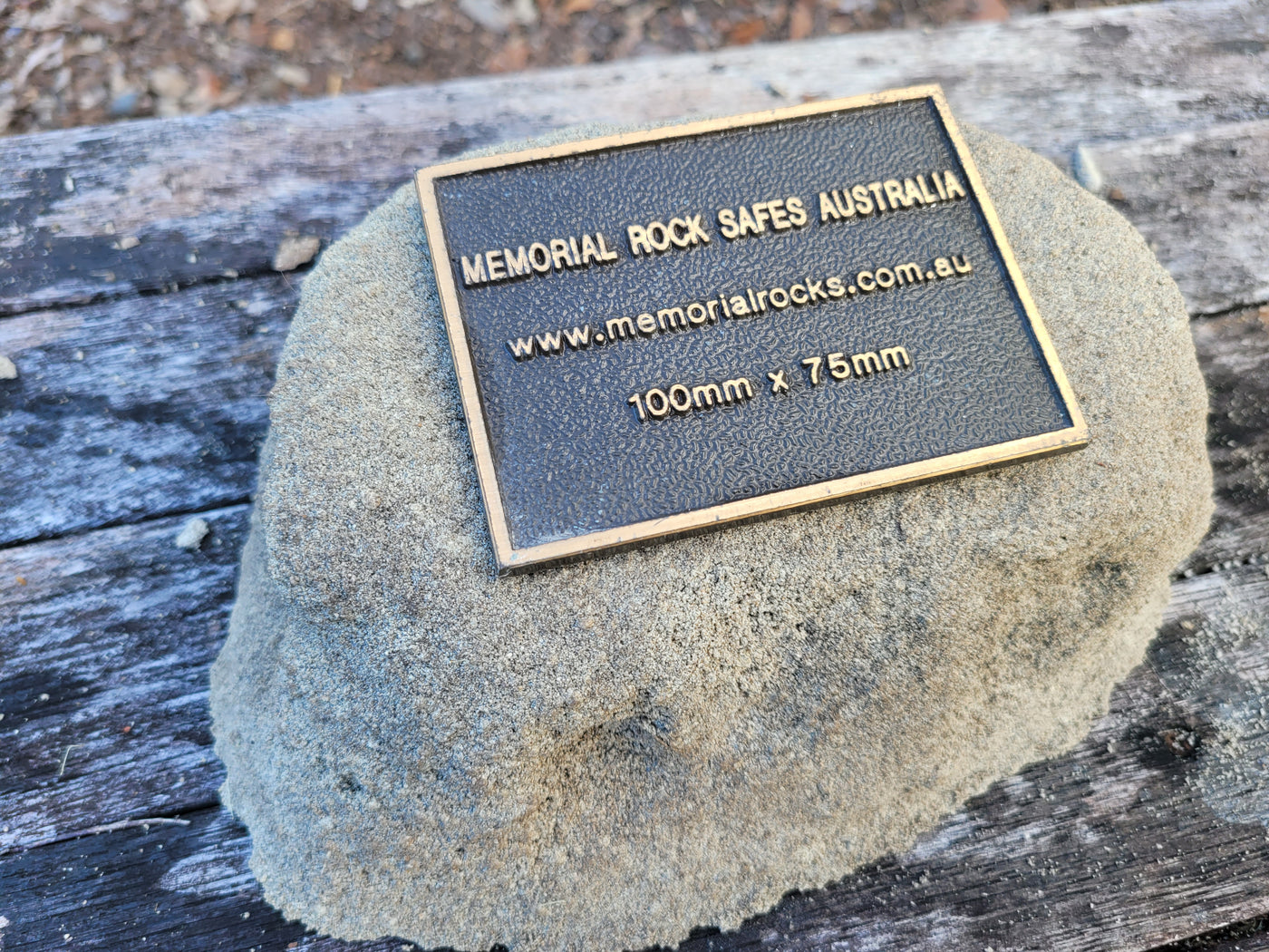 Memorial Rock Urns are a loving practical alternative for the safe keeping of a loved one's ashes. This Memorial Rock Urn has a small internal sealed container for partial ash interment. This Partial Ash Urn Memorial rock has an incorporated flat space for a 100 mm x 75mm x4.5mm industry standard bronze plaque. Proudly Australian made, origin...
