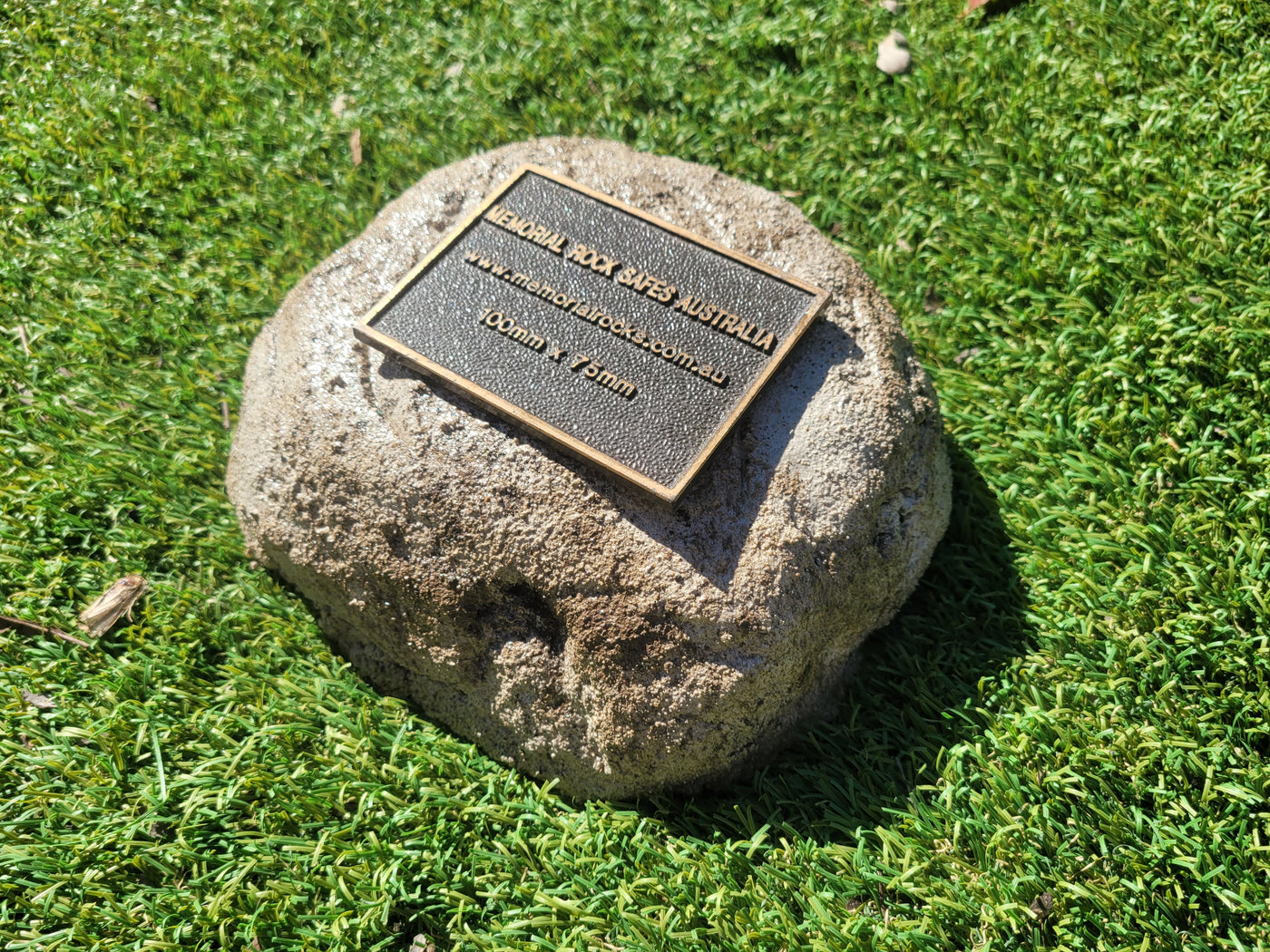 Memorial Rock Urns are a loving practical alternative for the safe keeping of a loved one's ashes. This Memorial Rock Urn has a small internal sealed container for partial ash interment. This Partial Ash Urn Memorial rock has an incorporated flat space for a 100 mm x 75mm x4.5mm industry standard bronze plaque. Proudly Australian made, origin...