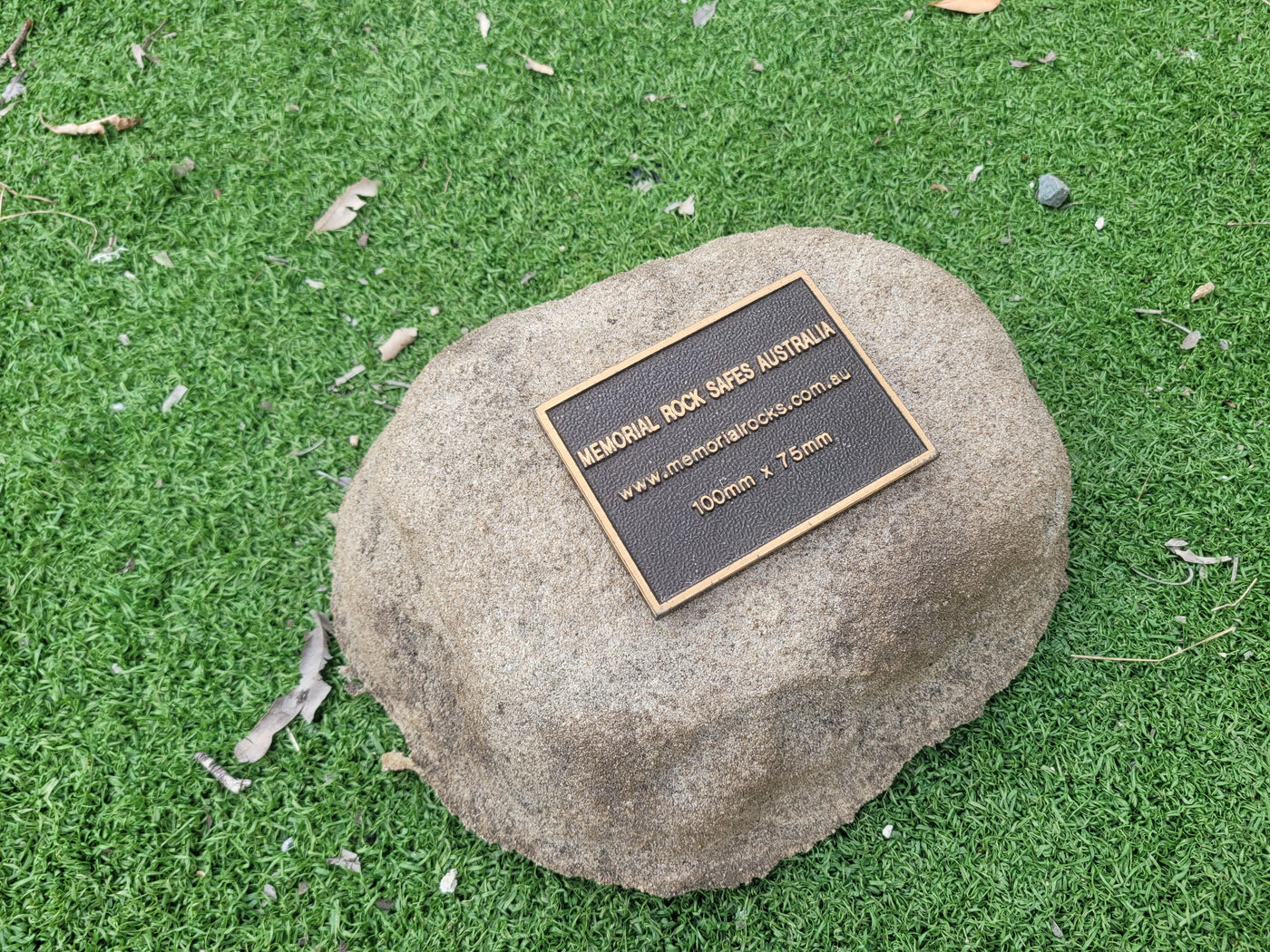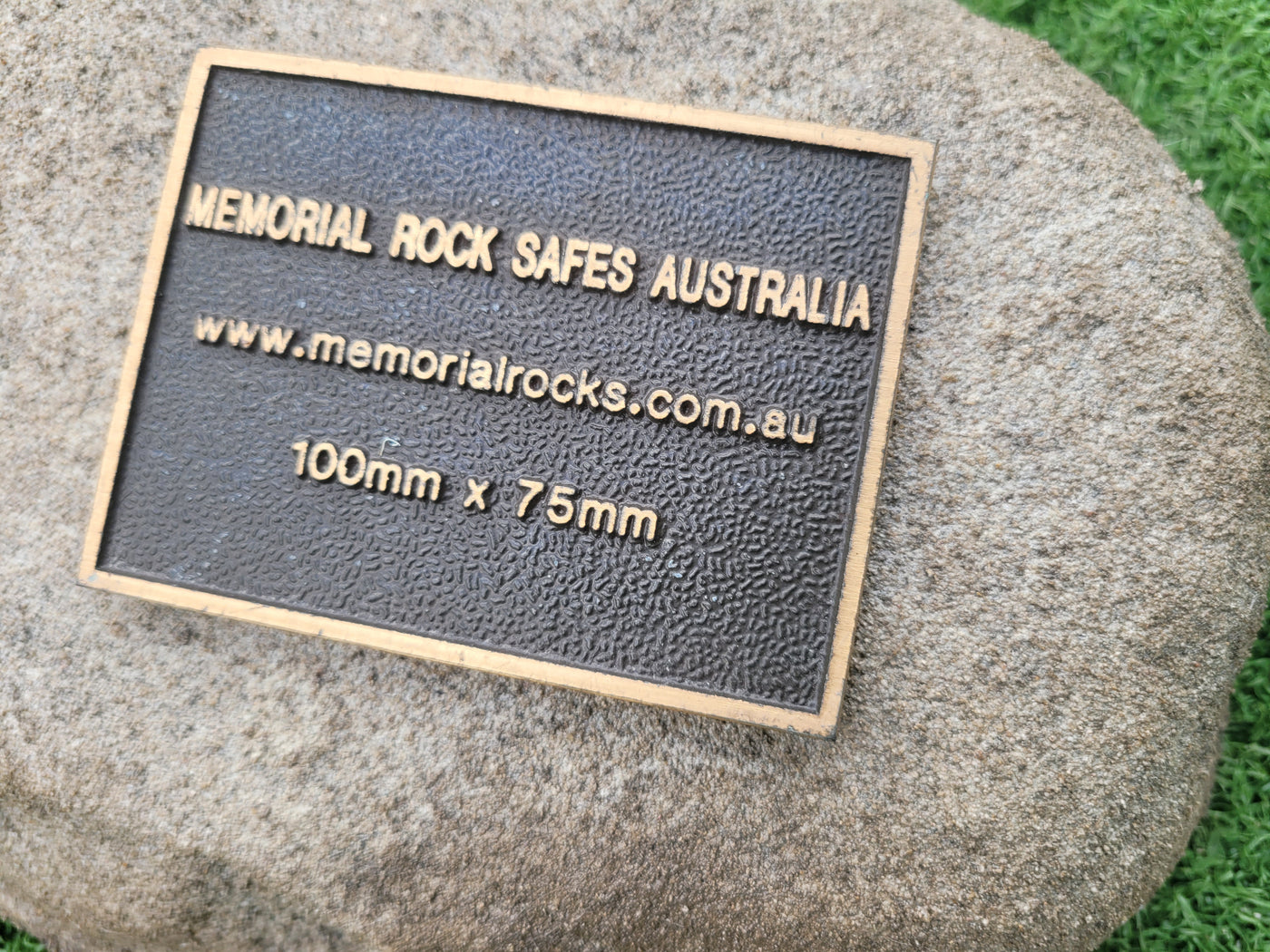 This Partial Ash Urn Memorial rock has an incorporated  flat space for a industry standard  bronze plaque 80 mm x 40mm x4.5mm or a 150mm  x 100mm x 4.5 mm heart shaped plaque or a 150mm  x 100mm x4.5mm. Please see Photos. SOLD SEPARATELY.