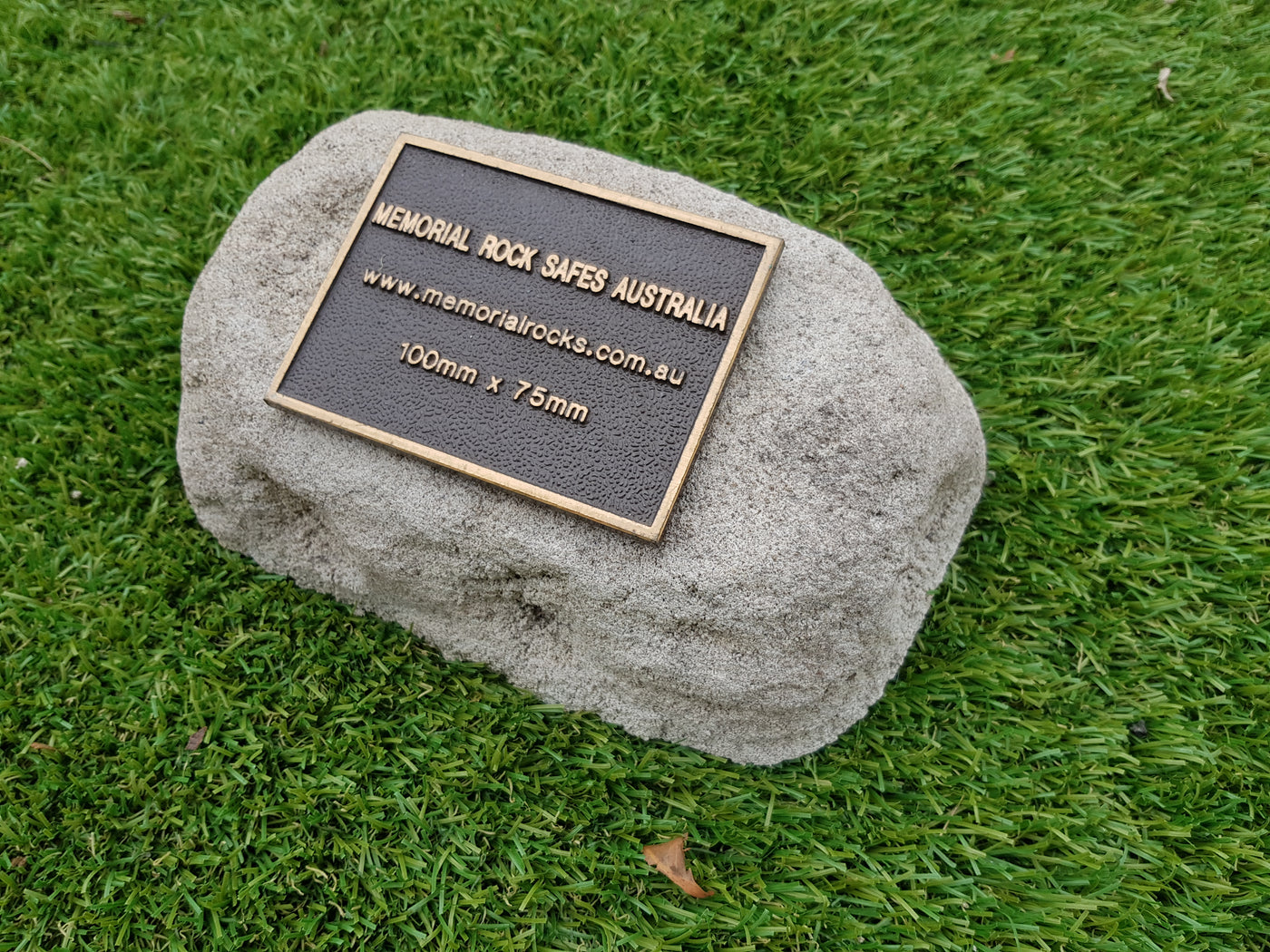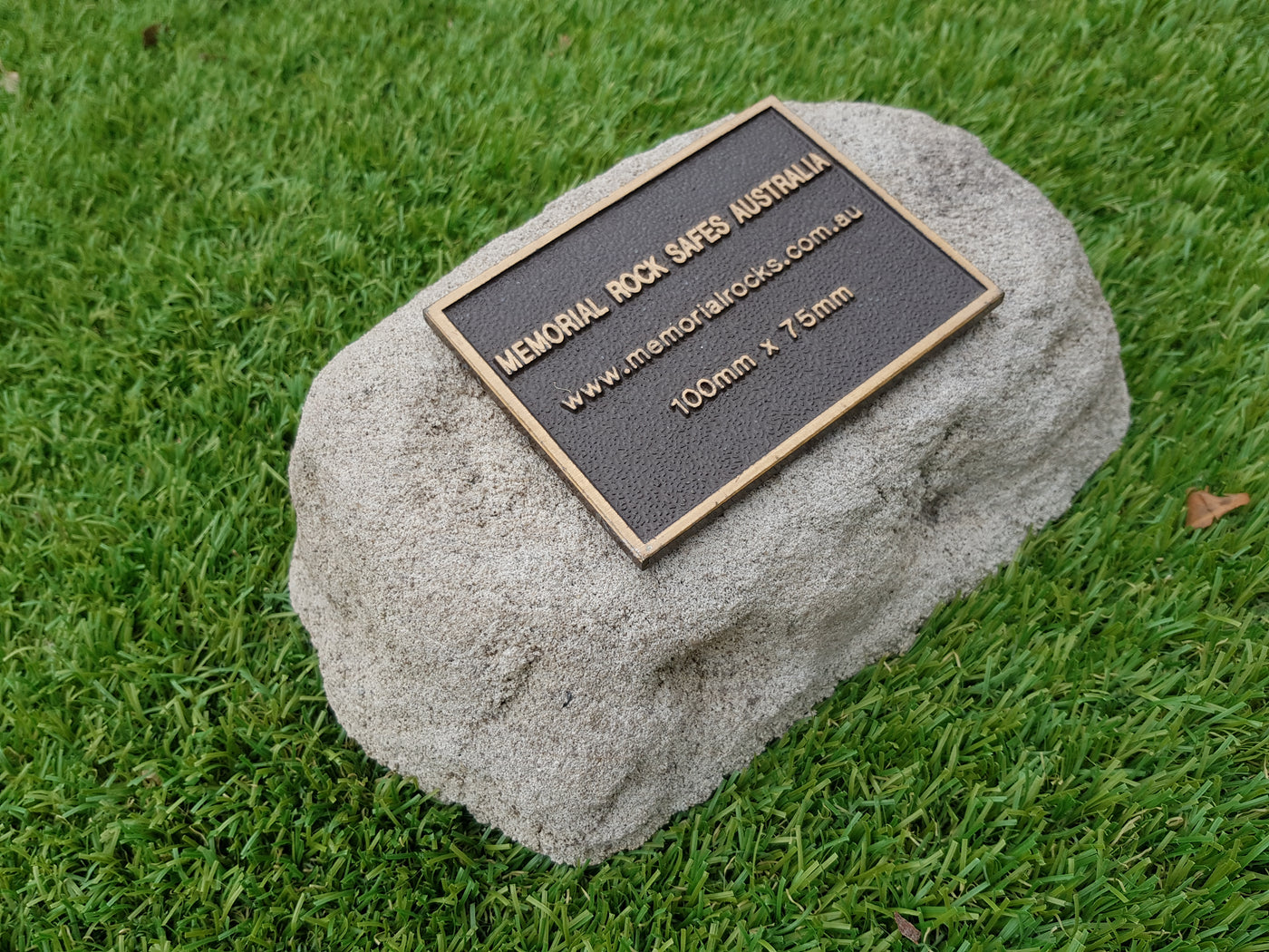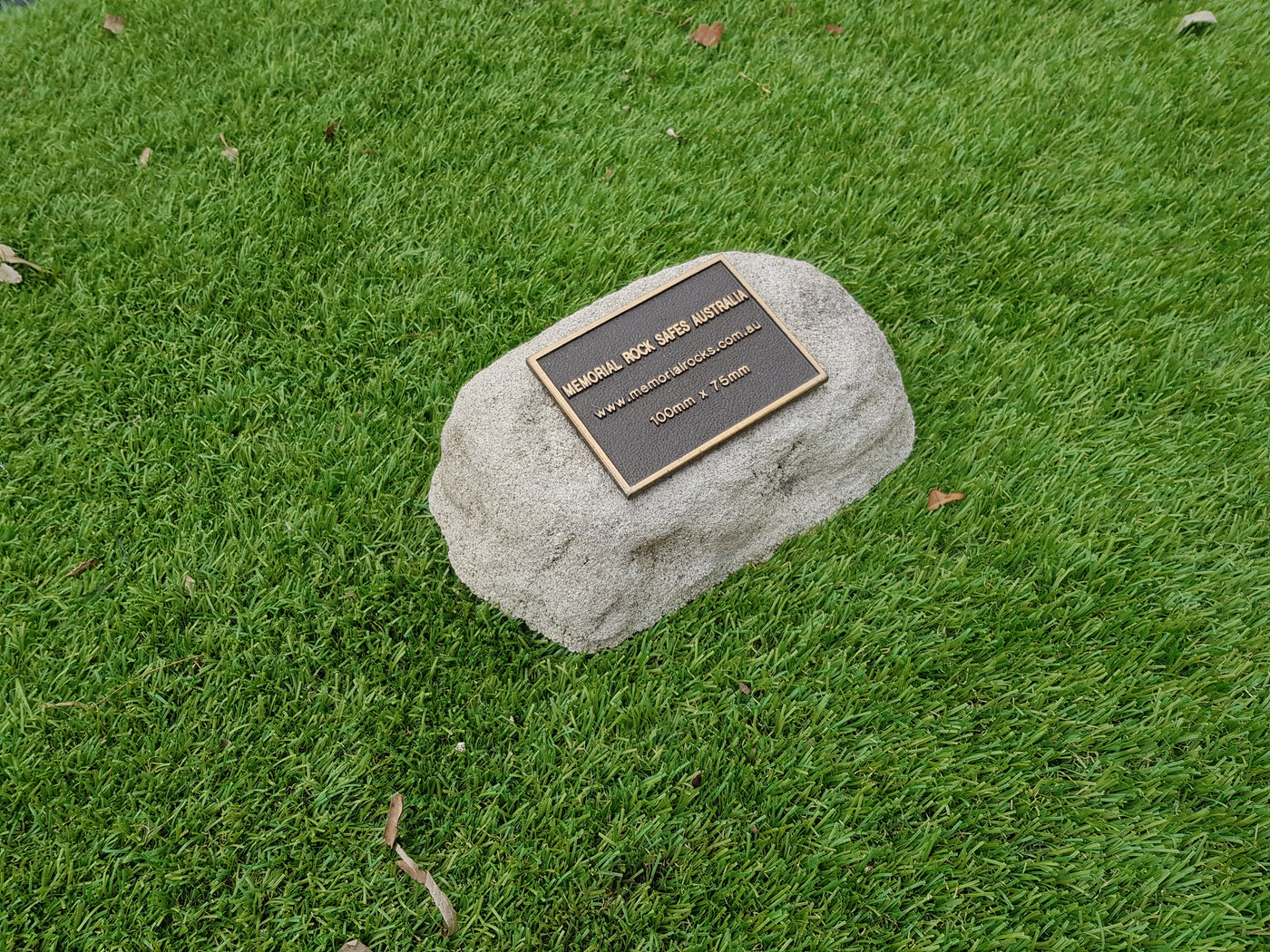 Memorial Rock Urns are a loving practical alternative for the safe keeping of a loved one's ashes. This Memorial Rock Urn has a small internal sealed container for partial ash interment. This Partial Ash Urn Memorial rock has an incorporated flat space for a industry standard bronze plaque 80 mm x 40mm x4.5mm or a 150mm x 100mm x 4.5 mm hear...