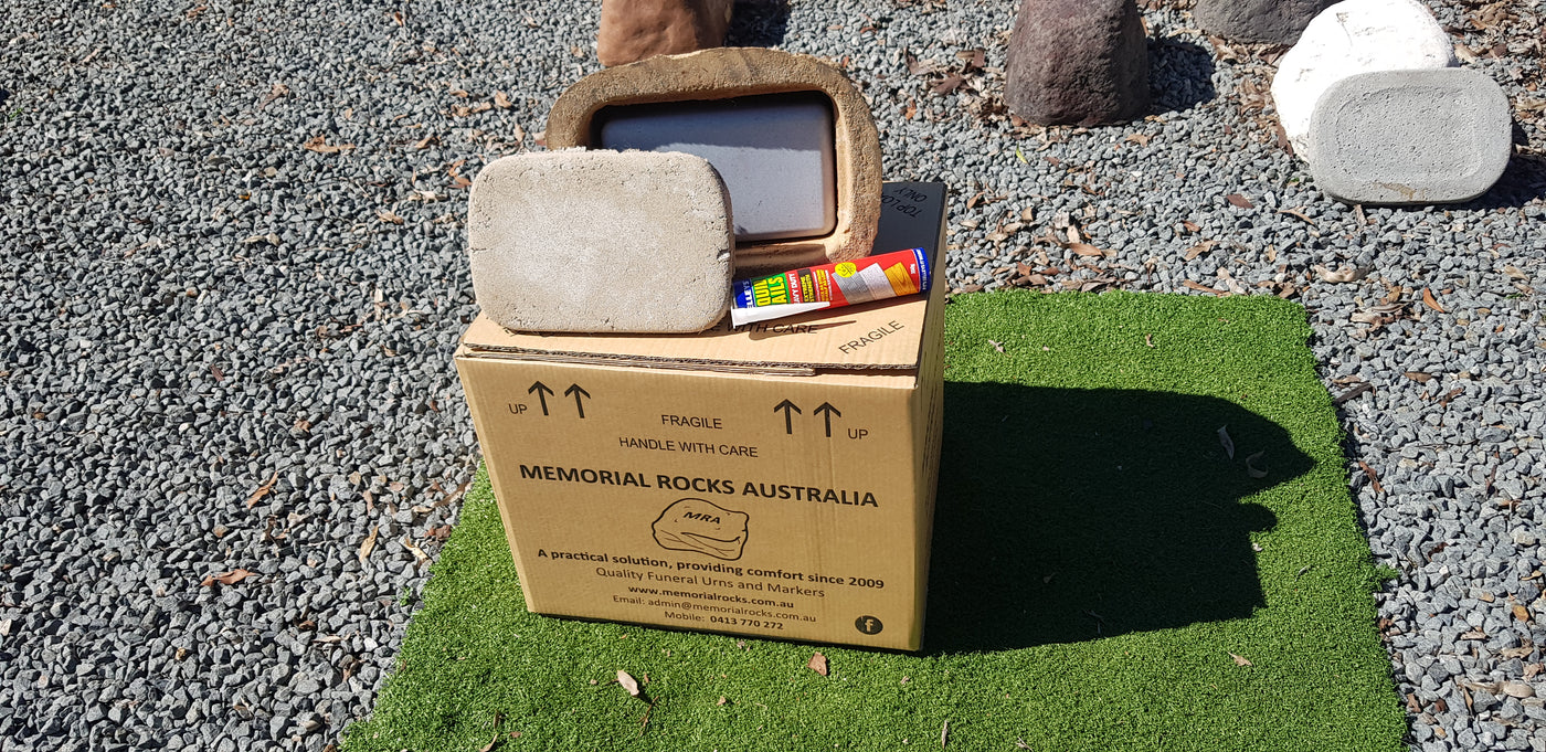 Memorial Rock Urns are a loving practical alternative for the safe keeping of a loved one's ashes. This Memorial rock has an incorporated flat indented recess space for a 150mm x 100mm x4.5mm industry standard bronze plaque. PLAQUE SOLD SEPARATELY Proudly an Australian made, original product. Operating since 2009. Regular size. Lightweight (a...