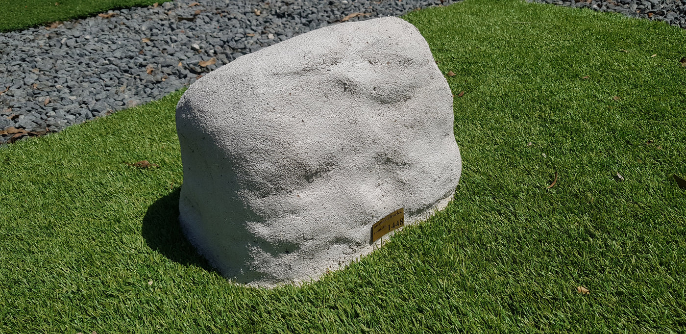 Memorial Rock Urns are a loving practical alternative for the safe keeping of a loved one's ashes. This Memorial rock has an incorporated flat space for a 150mm x 100mm x4.5mm industry standard bronze plaque. PLAQUE SOLD SEPARATELY Proudly an Australian made, original product. Operating since 2009. Regular size. Lightweight (approx. 12 kg) Me...