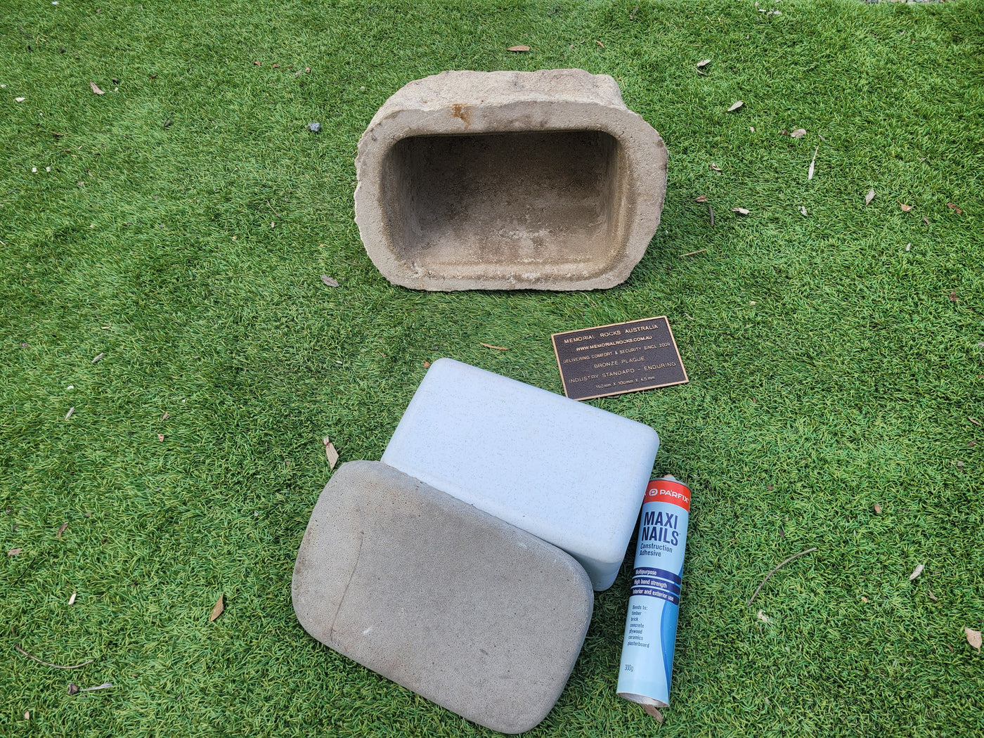 Memorial Rock Urns are a loving practical alternative for the safe keeping of a loved one's ashes. This Memorial rock has an incorporated flat indented recess space for a 150mm x 100mm x4.5mm industry standard bronze plaque. PLAQUE SOLD SEPARATELY Proudly an Australian made, original product. Operating since 2009. Regular size. Lightweight (a...