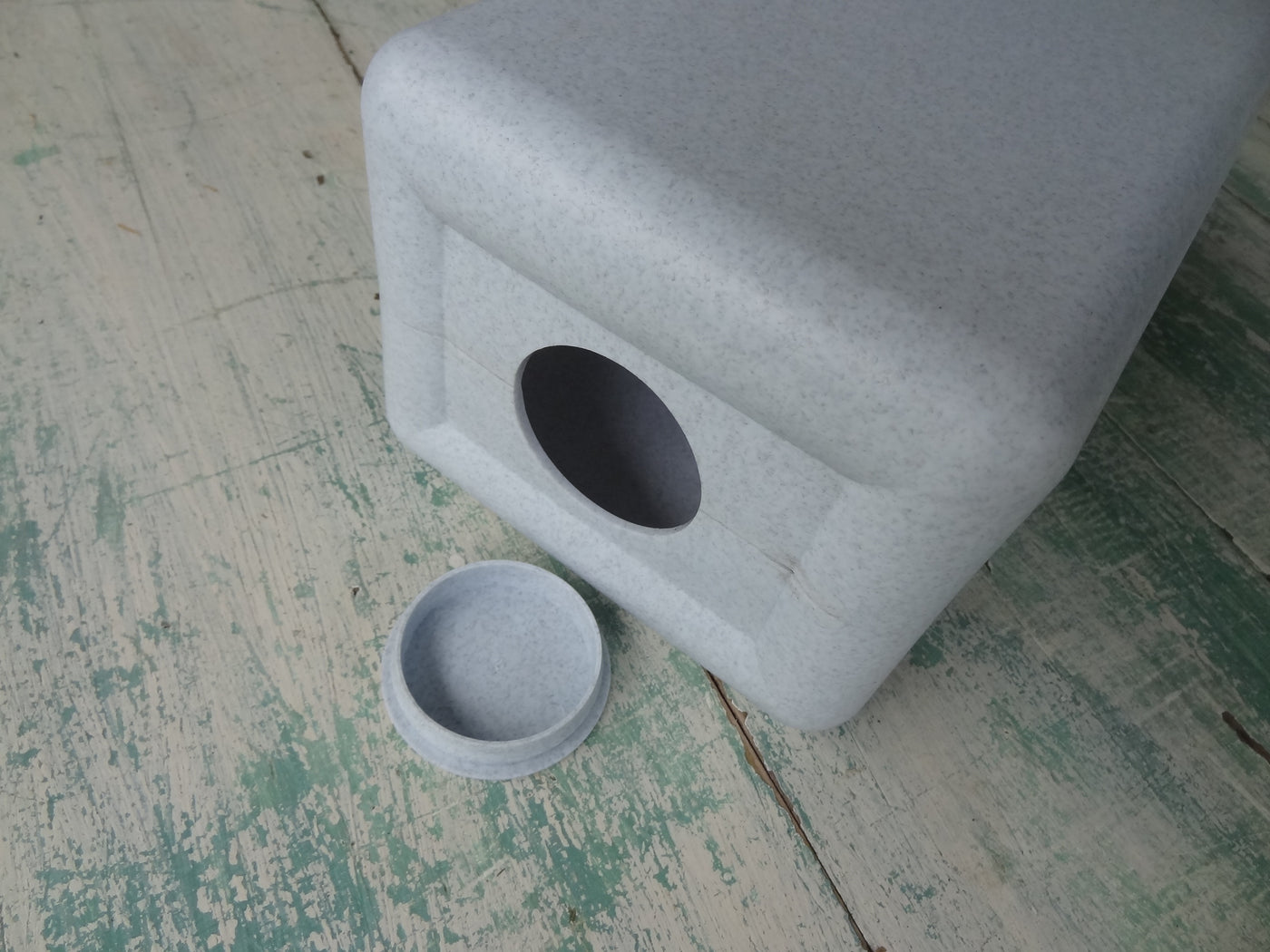 A standard Australian size Plastic Ash Container, as usually provided by crematoriums in Australia.