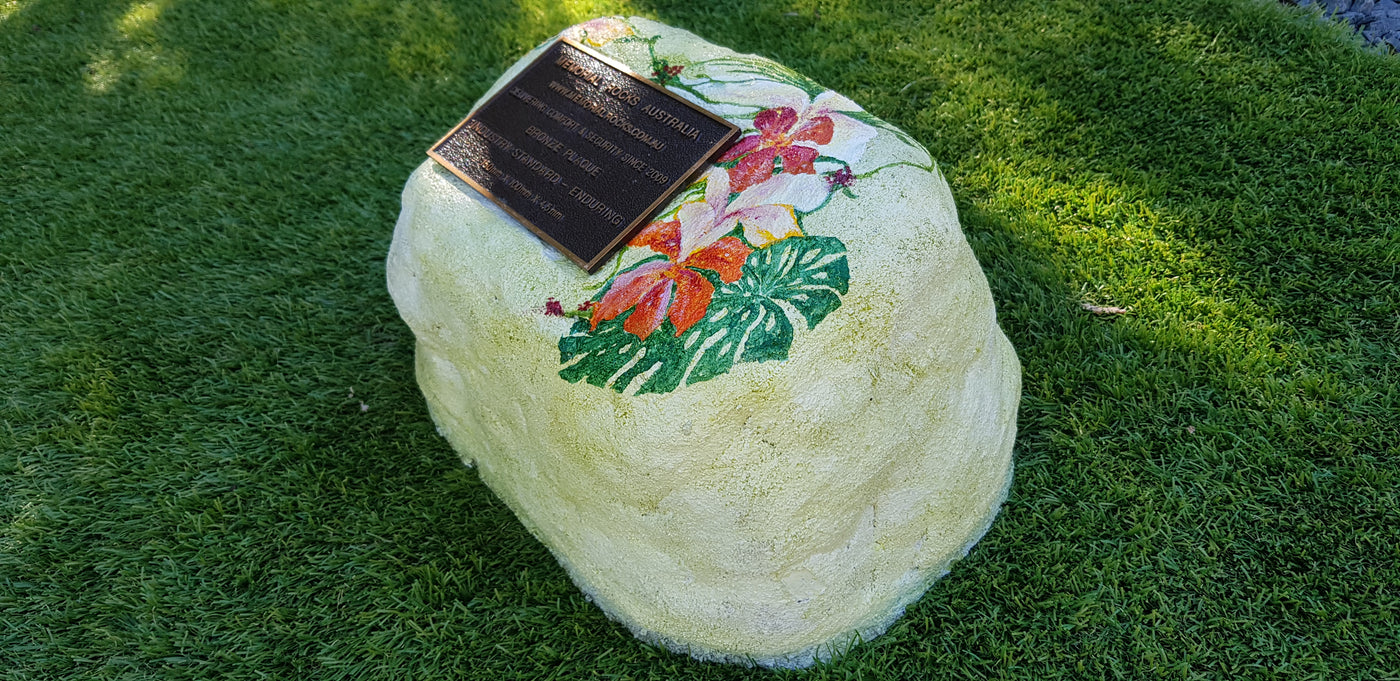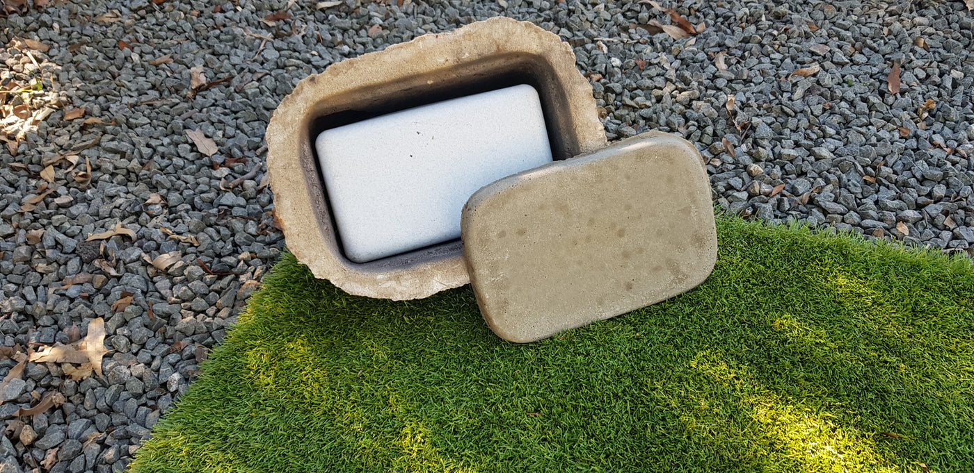Very Lightweight (approx. 15 kg) Memorial Rock/Stone/Urn with a sealable internal cavity for the safe-keeping of a loved one's ashes. Holds one standard Australian sized ash container, plus memorabilia.