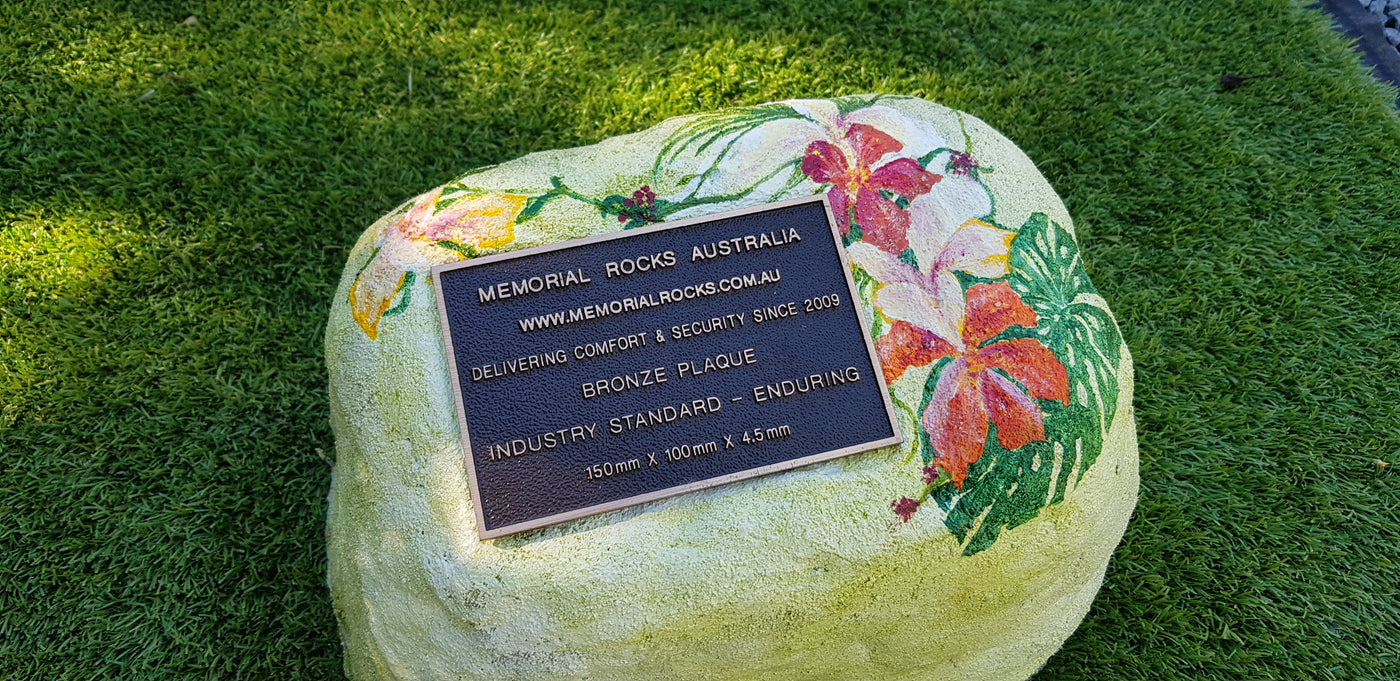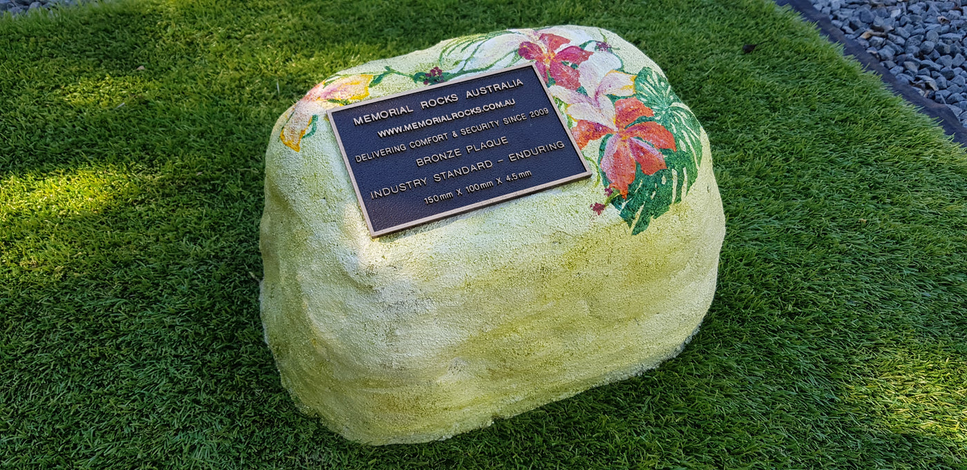 This Memorial rock has an incorporated  flat space for a 150mm x 100mm x4.5mm Plaque or smaller.