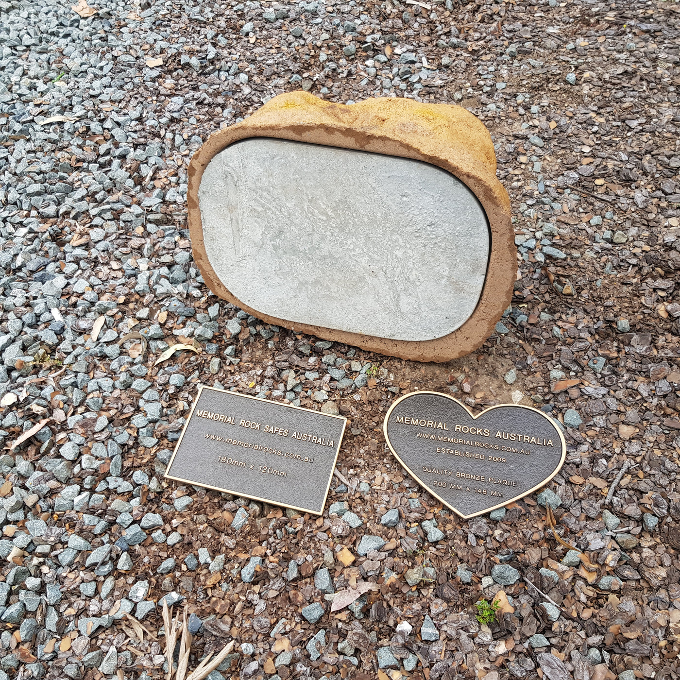 Memorial Rock Urns are a loving practical alternative for the safe keeping of a loved one's ashes. This Memorial rock has an incorporated flat space for up to a 180mm x 120mm x 4.5mm Plaque or our heart plaque. (200mm x 150mm) PLAQUE SOLD SEPARATELY The blue plastic standard Australian sized cremation urn seen in the pictures demonstrates the ...