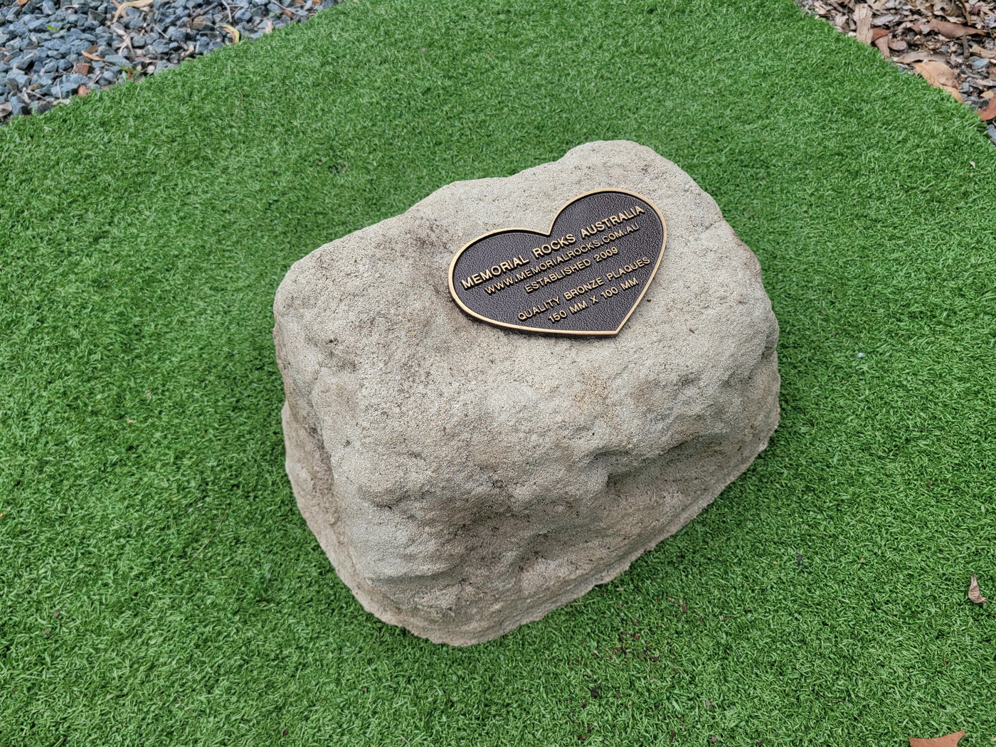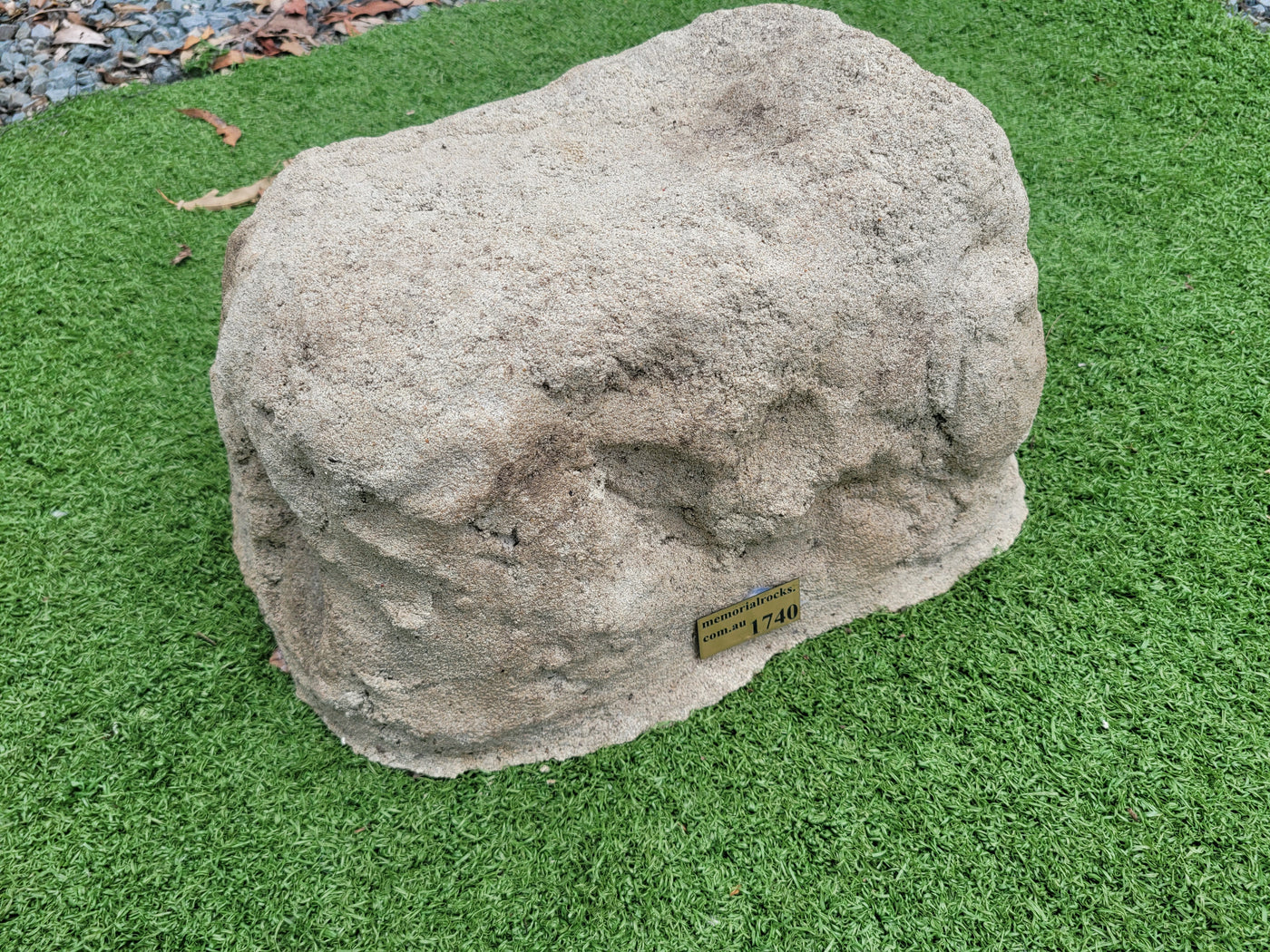 Memorial Rock Urns are a loving practical alternative for the safe keeping of a loved one's ashes. This Memorial rock has an incorporated flat space for up to a 180mm x 120mm x 4.5mm Plaque or our heart plaque. (200mm x 150mm) PLAQUE SOLD SEPARATELY The blue plastic standard Australian sized cremation urn seen in the pictures demonstrates the ...