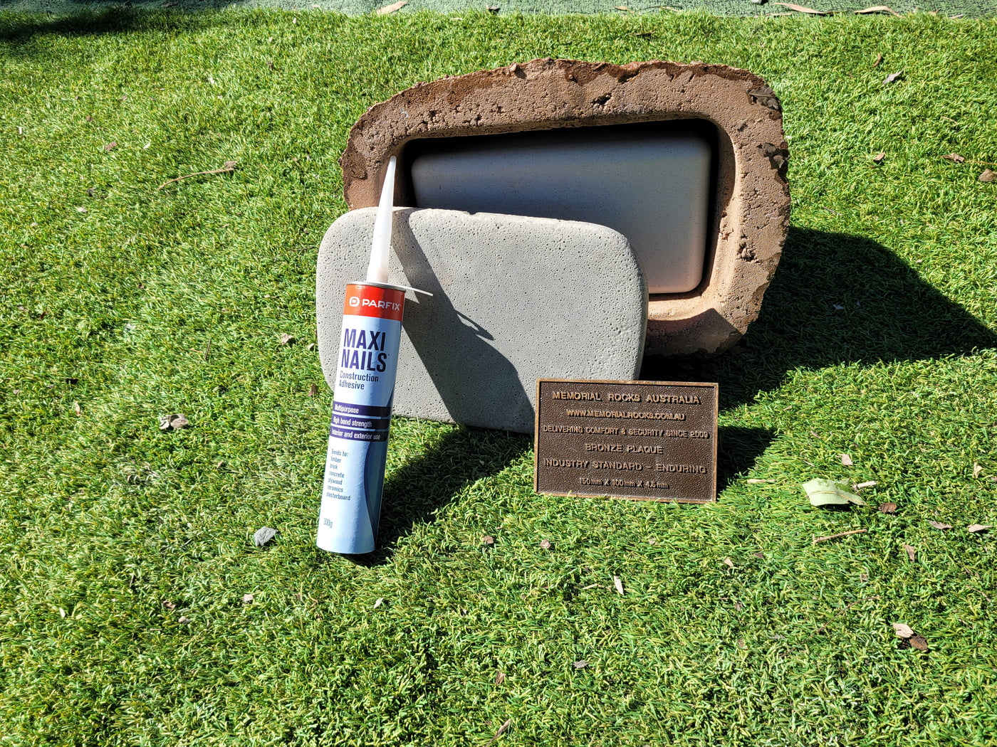 A high quality bronze plaque of your choice can also be purchased and can affixed prior to shipping if you wish.  A 150mm x 100mm x 4.5 mm Plaque is the correct size plaque for the regular sized Memorial Rock Urn.