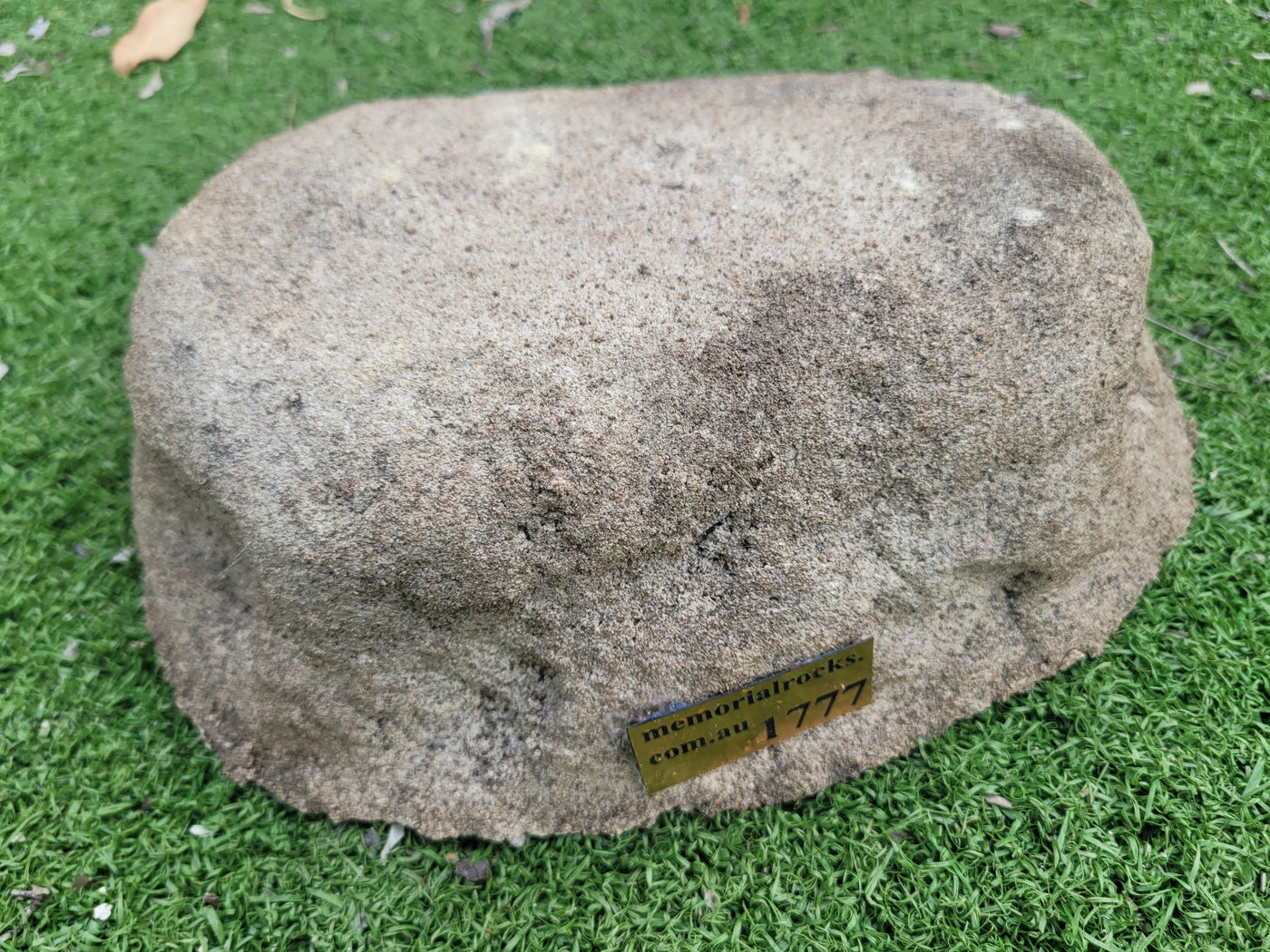 Memorial Rock Urns are a loving practical alternative for the safe keeping of a loved one's ashes. This Memorial Rock Urn has a small internal sealed container for partial ash interment. This Partial Ash Urn Memorial rock has an incorporated flat space for a 100 mm x 75mm x4.5mm industry standard bronze plaque. Proudly Australian made, origin...